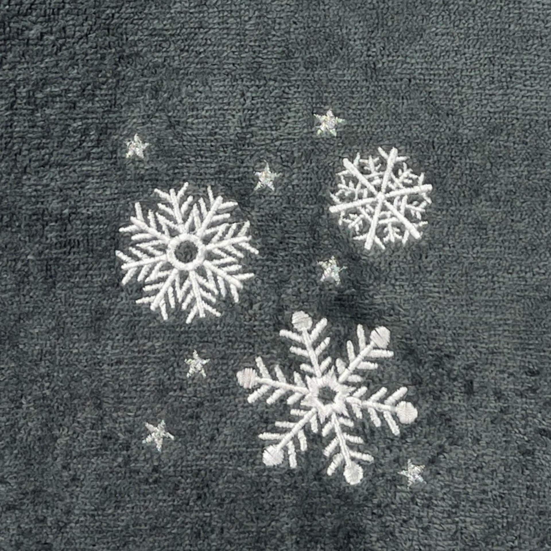 Serafina Home Christmas Hand Bathroom Towels, Set of 2, Embroidered Snowflakes and Stars, Dark Grey Velour Terry Cotton 16" x 25", Winter Holiday…