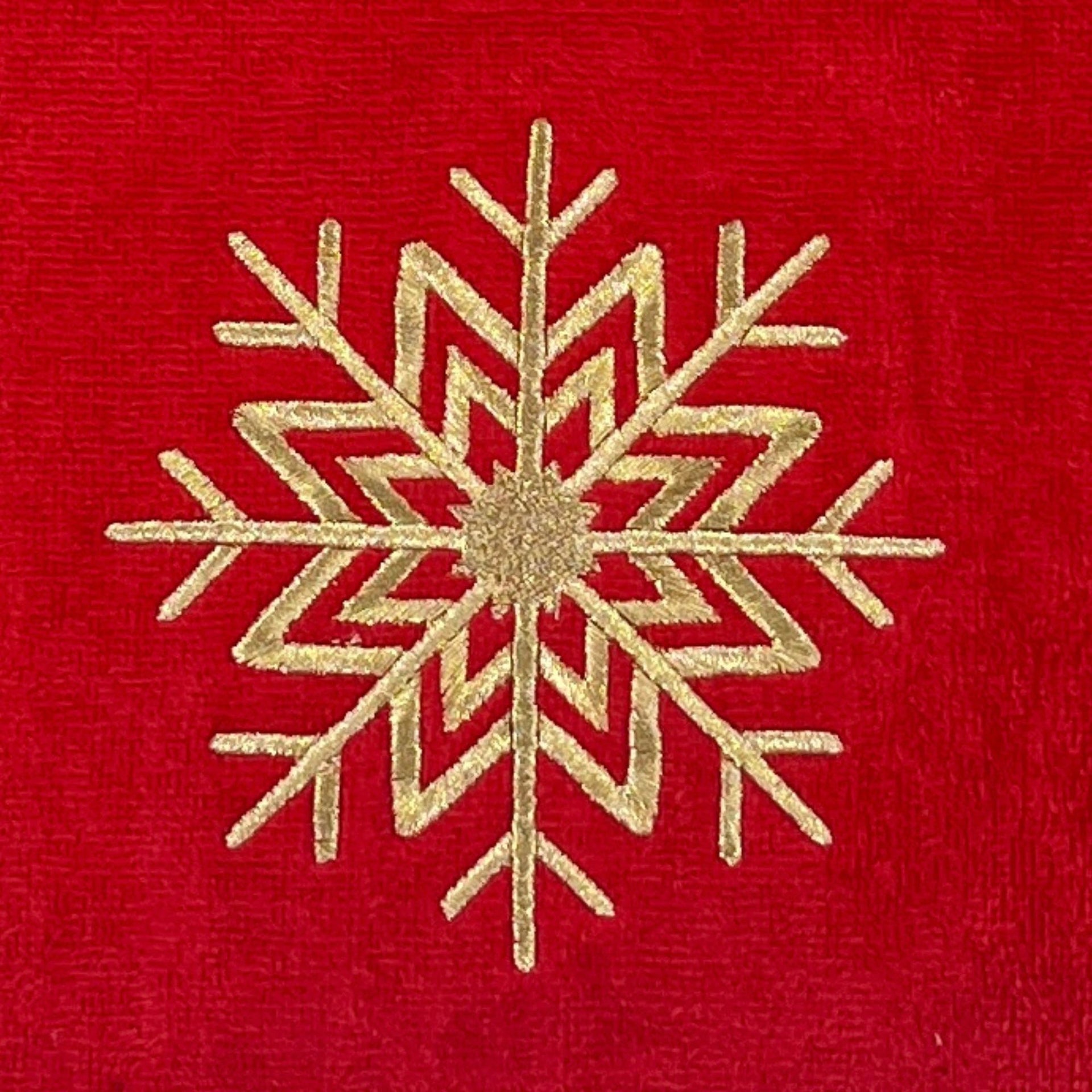 Serafina Home Christmas Hand Towel for Bathroom - Set of 2 Red 100% Cotton - 25 x 16 Embroidered Gold Snowflake Design - Bath & Kitchen Decor
