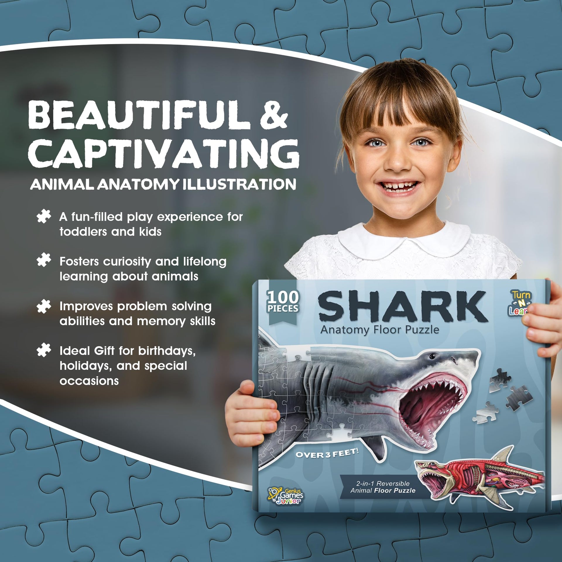 Shark Animal Anatomy Floor Puzzle – 100-Piece Double-Sided Jigsaw Puzzle for Kids Ages 4-8, Educational Large Floor Puzzle for Toddlers & Families
