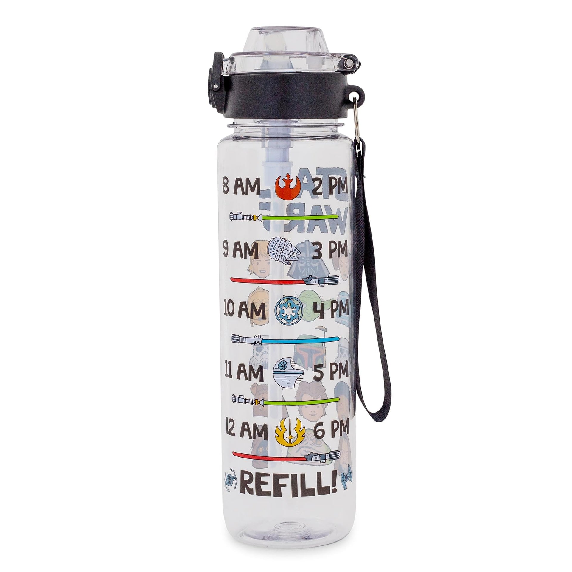 Silver Buffalo Star Wars Cartoon Characters Plastic Water Bottle with Locking Lid and Strap, 33 Ounces