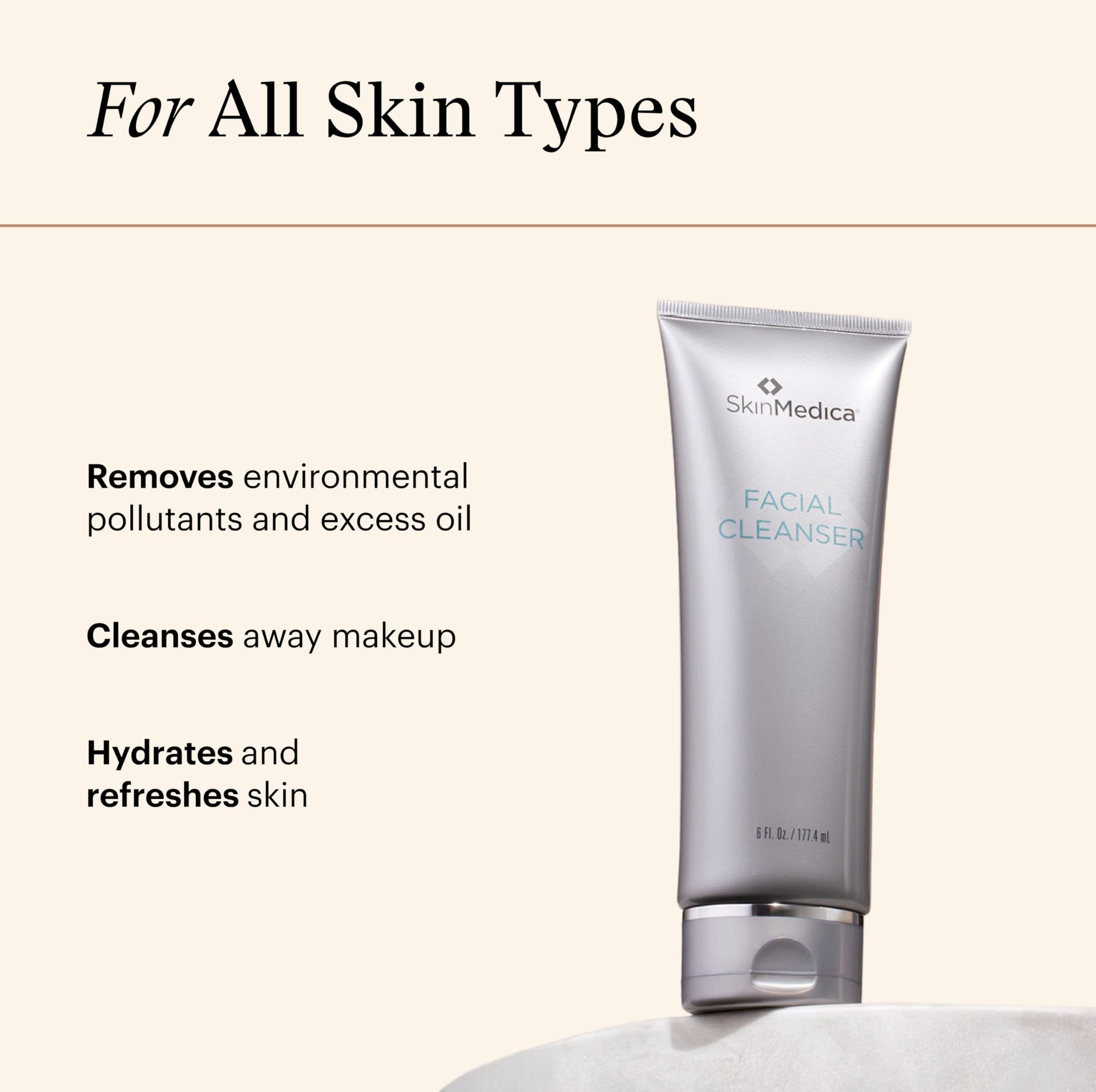 - SkinMedica Facial Cleanser gently removes dirt, oil, makeup and other impurities without causing irritation.