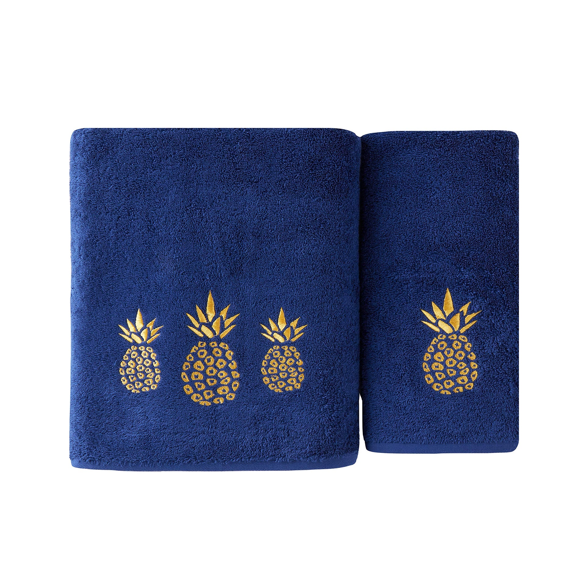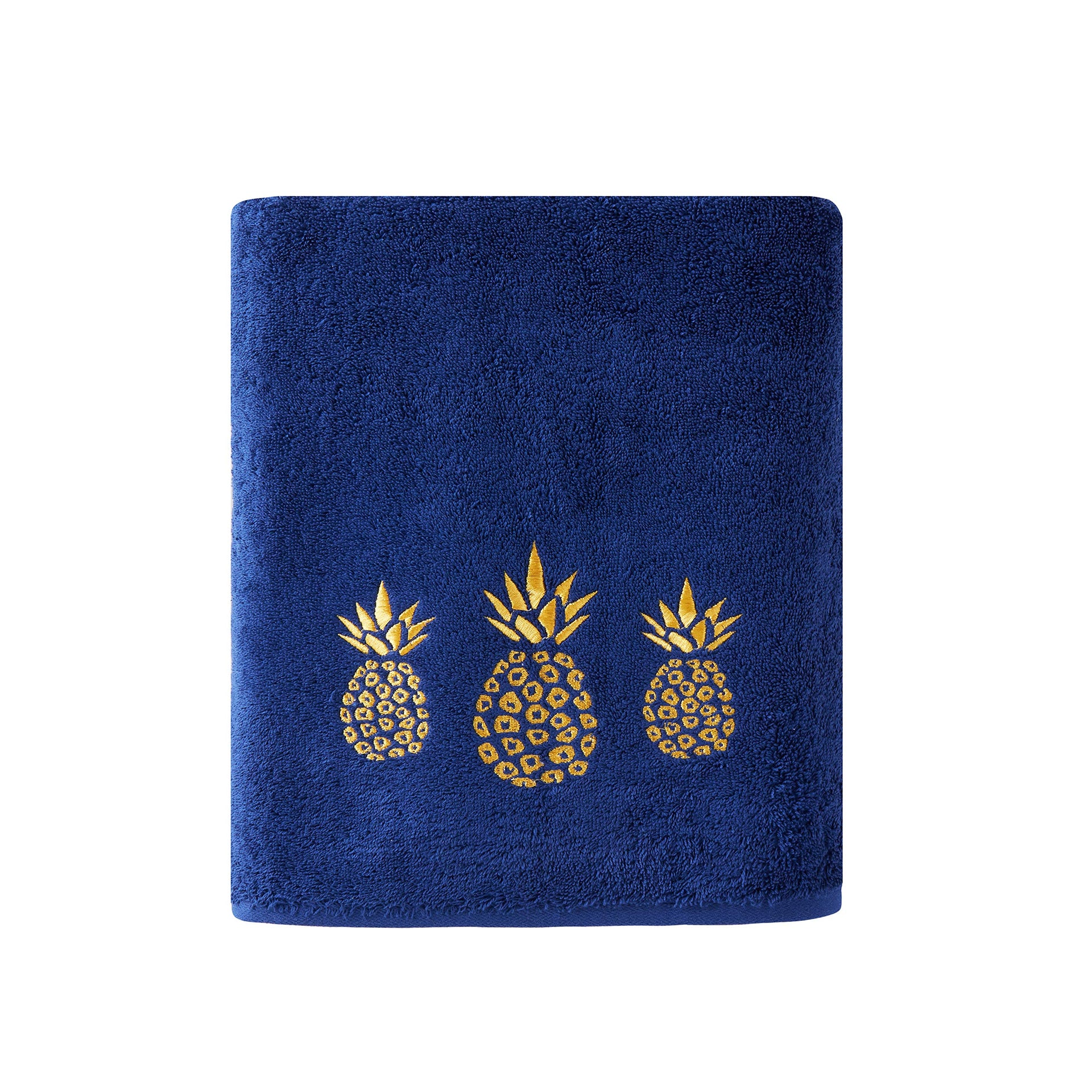 Regal and impressive in design, the Gilded Pineapple bath towel adds impressive color and design to the bath. Majestic navy blue is decorated with bright gold embroidered pineapples for an eye-catching bath towel. The Gilded Pineapple towel will be a focal point for any bathroom in the home. SKL Home by Saturday Knight Ltd. brings personality, fun and flair to the most intimate spaces in your home with products ranging from bath accessories and shower curtains, to towels, curtains and beyond. Whether your style is upbeat and modern, or classic and cozy, SKL Home provides a look to compliment almost any décor. Combining 40+ years’ experience, global design inspiration and premium fabrications, SKL Home continues to lead the way in home accessories.