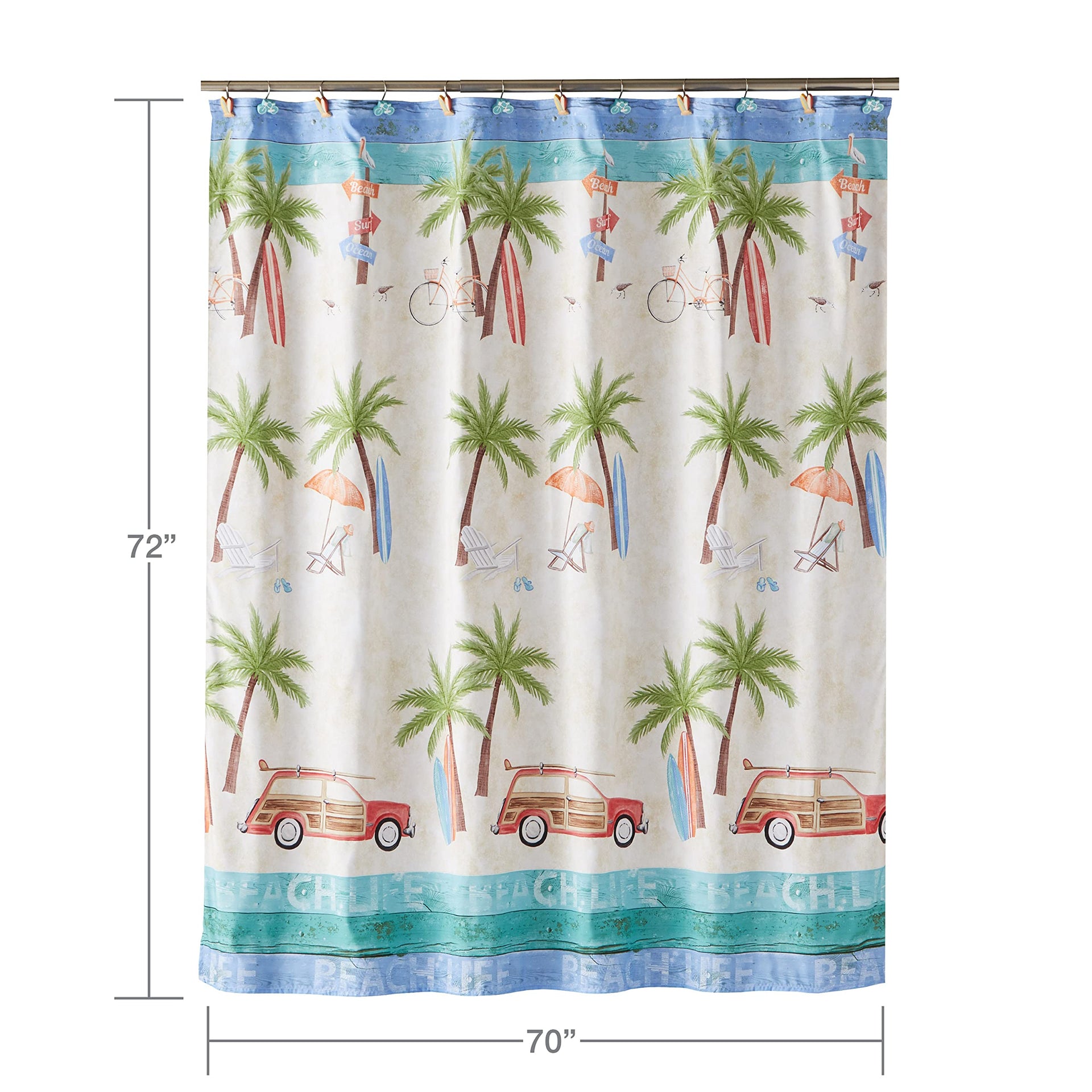 Surf's up! Bring the "Beach Life" to your home with the Paradise Beach bath collection. This fun shower curtain features the sandy shores, tropical palm trees and so much more. Shop the entire collection to complete the look.SKL Home by Saturday Knight Ltd. brings personality, fun and flair to the most intimate spaces in your home with products ranging from bath accessories and shower curtains, to towels, curtains and beyond. Whether your style is upbeat and modern, or classic and cozy, SKL Home provides a look to compliment almost any décor. Combining 40+ years’ experience, global design inspiration and premium fabrications, SKL Home continues to lead the way in home accessories.