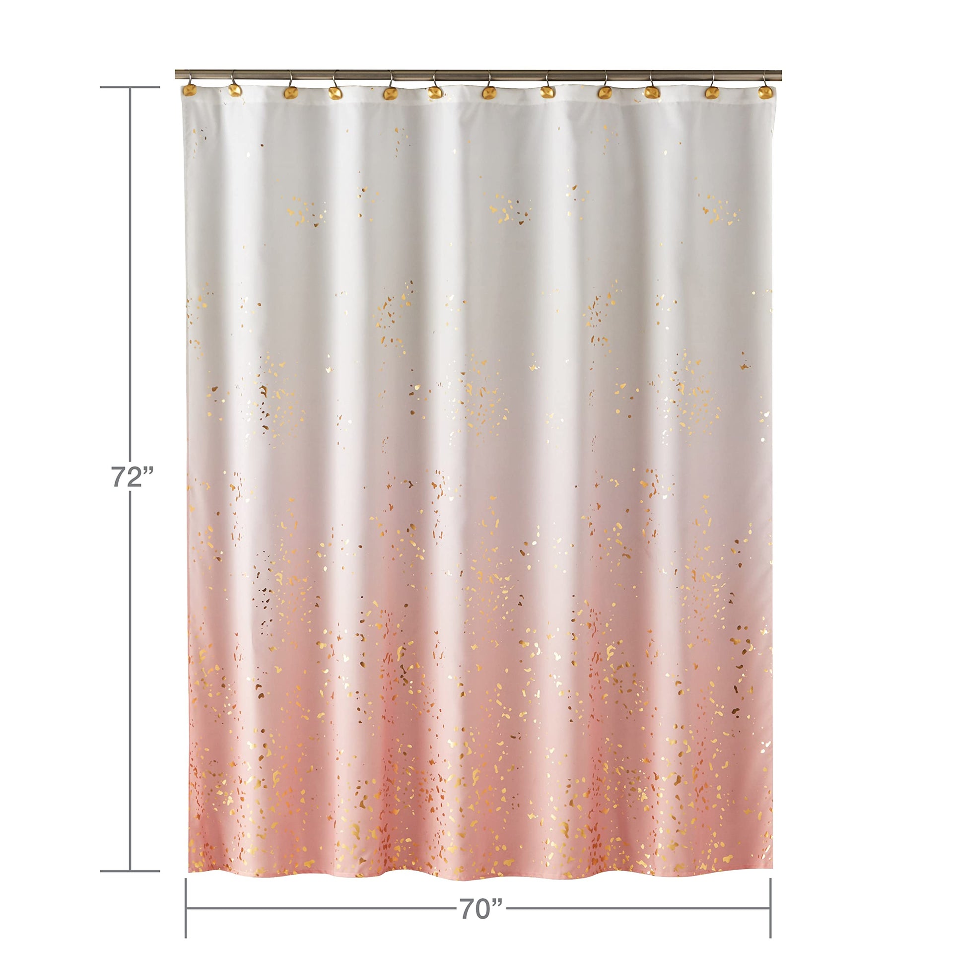 Shimmer and shine with the Splatter shower curtain. Featuring a pink ombre fade with a spray of metallic gold accents, this design creates the ultimate modern-glam look. Pair with gold-tone accessories to finish off your space. 12-eyelet holes along top allow for easy hanging. Use of a liner is recommended.SKL Home by Saturday Knight Ltd. brings personality, fun and flair to the most intimate spaces in your home with products ranging from bath accessories and shower curtains, to towels, curtains and beyond. Whether your style is upbeat and modern, or classic and cozy, SKL Home provides a look to compliment almost any décor. Combining 40+ years’ experience, global design inspiration and premium fabrications, SKL Home continues to lead the way in home accessories.