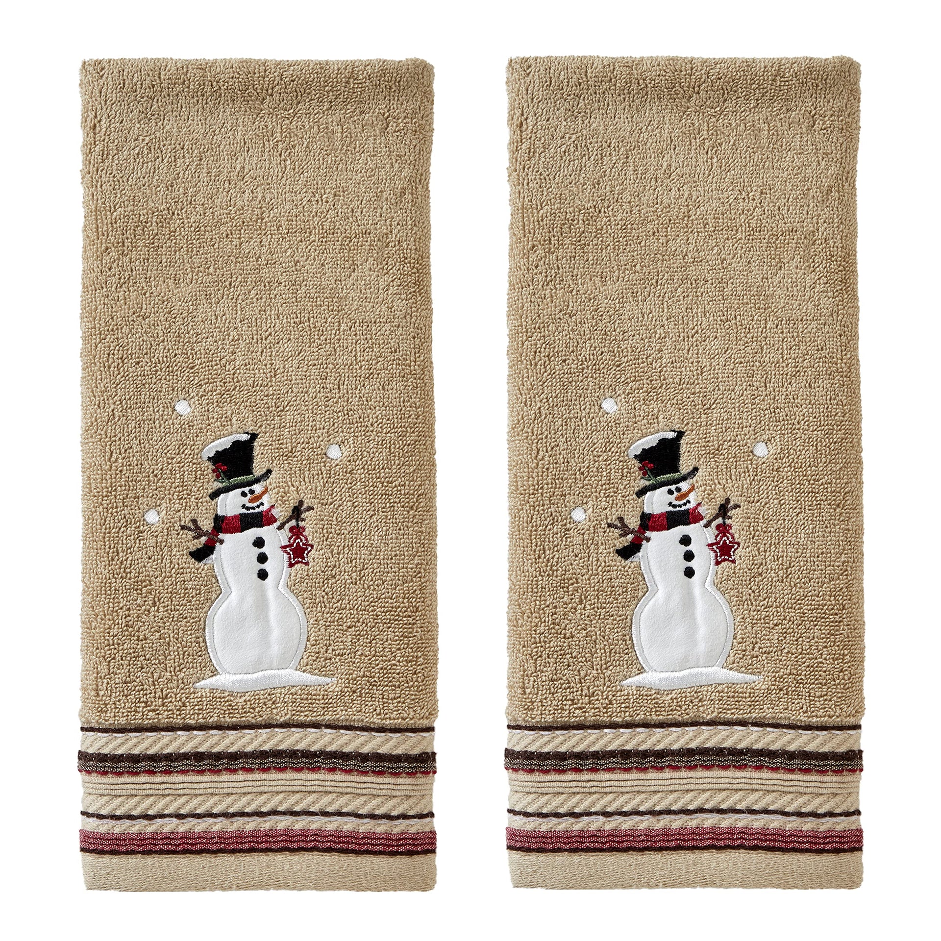 Bring a rustic, farmhouse feel to your holiday décor with the Rustic Plaid collection. This plush, terry hand towel set features fun snowman embroidery and colorful, striped dobby trim. Complete the look with the coordinating Rustic Plaid collection; sold separately. SKL Home by Saturday Knight Ltd. brings personality, fun, and flair to the most intimate spaces in your home with products ranging from bath accessories and shower curtains to towels, curtains, and beyond. Whether your style is upbeat and modern or classic and cozy, SKL Home provides a look to complement almost any décor. Combining 40+ years’ experience, global design inspiration, and premium fabrications, SKL Home continues to lead the way in home accessories.
