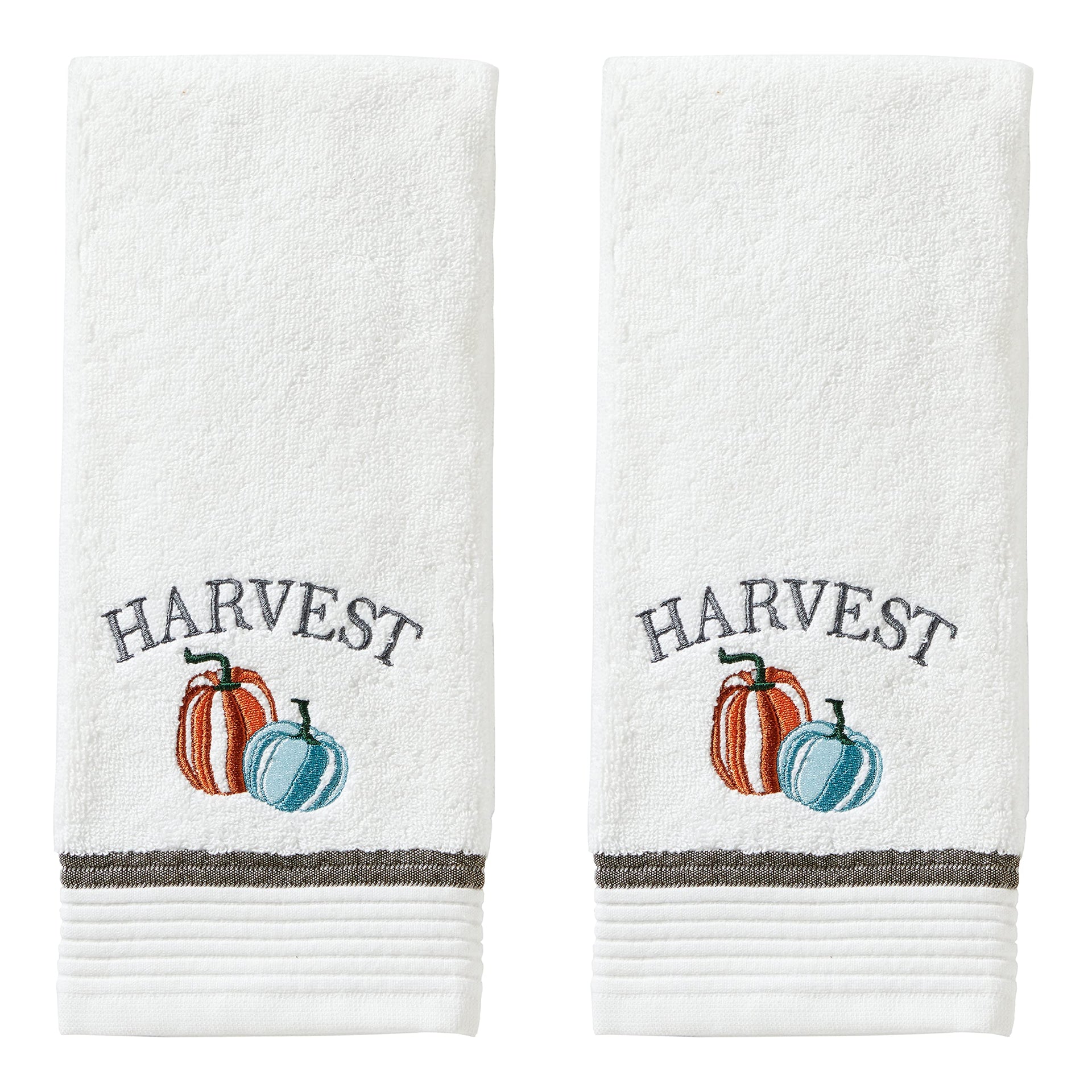 Amp up your autumn decor with the Nature's Harvest hand towels. This 2-piece set is made of soft cotton terry and features "Harvest" embroidery with 2 pumpkins and dobby trim. Shop other harvest items to complete the look. SKL Home brings personality, fun, and flair to the most intimate spaces in your home, with products ranging from bath accessories and shower curtains to towels, curtains, and beyond. Whether your style is upbeat and modern or classic and cozy, SKL Home provides a look to complement almost any décor. Combining 40+ years’ experience, global design inspiration, and premium fabrications, SKL Home continues to lead the way in home accessories.