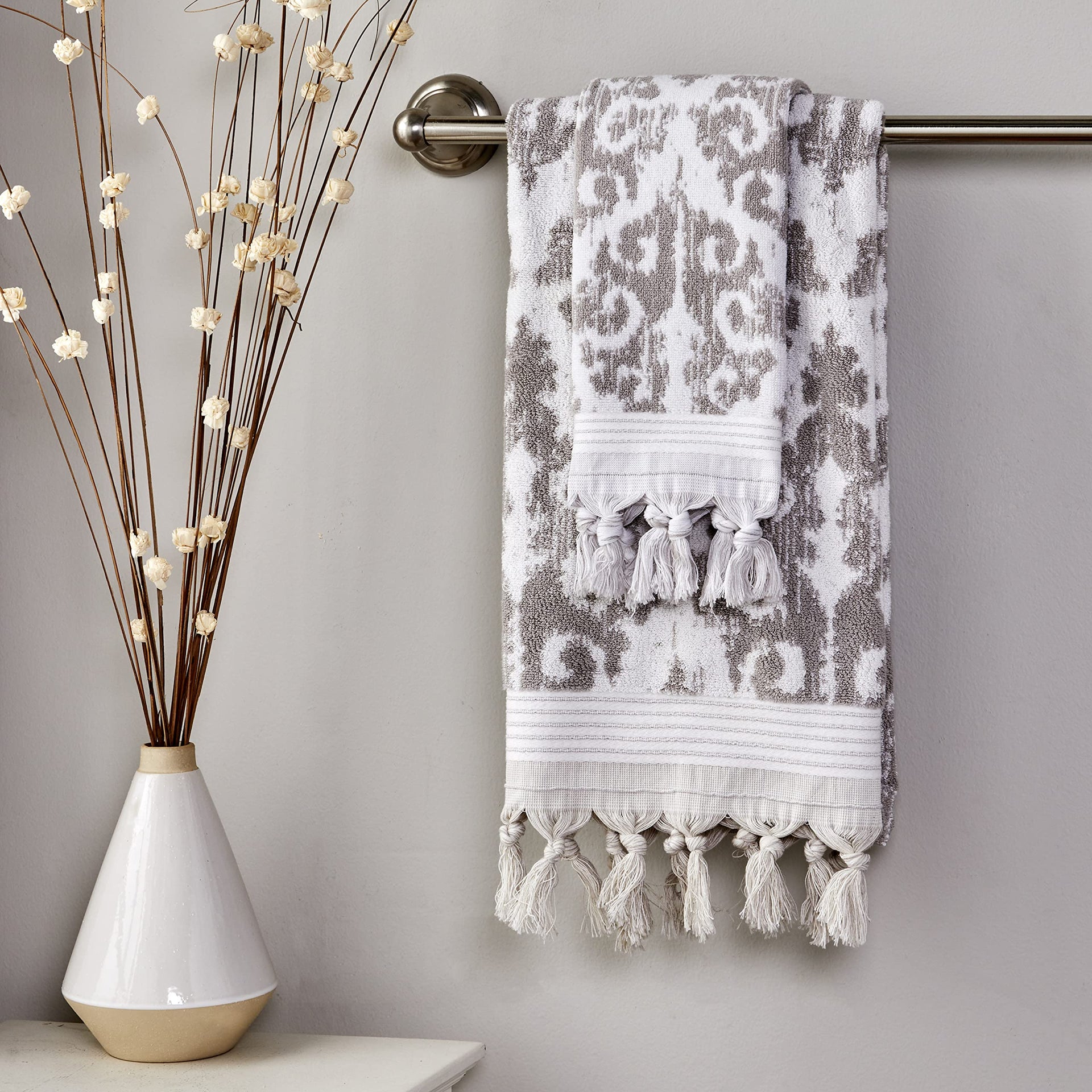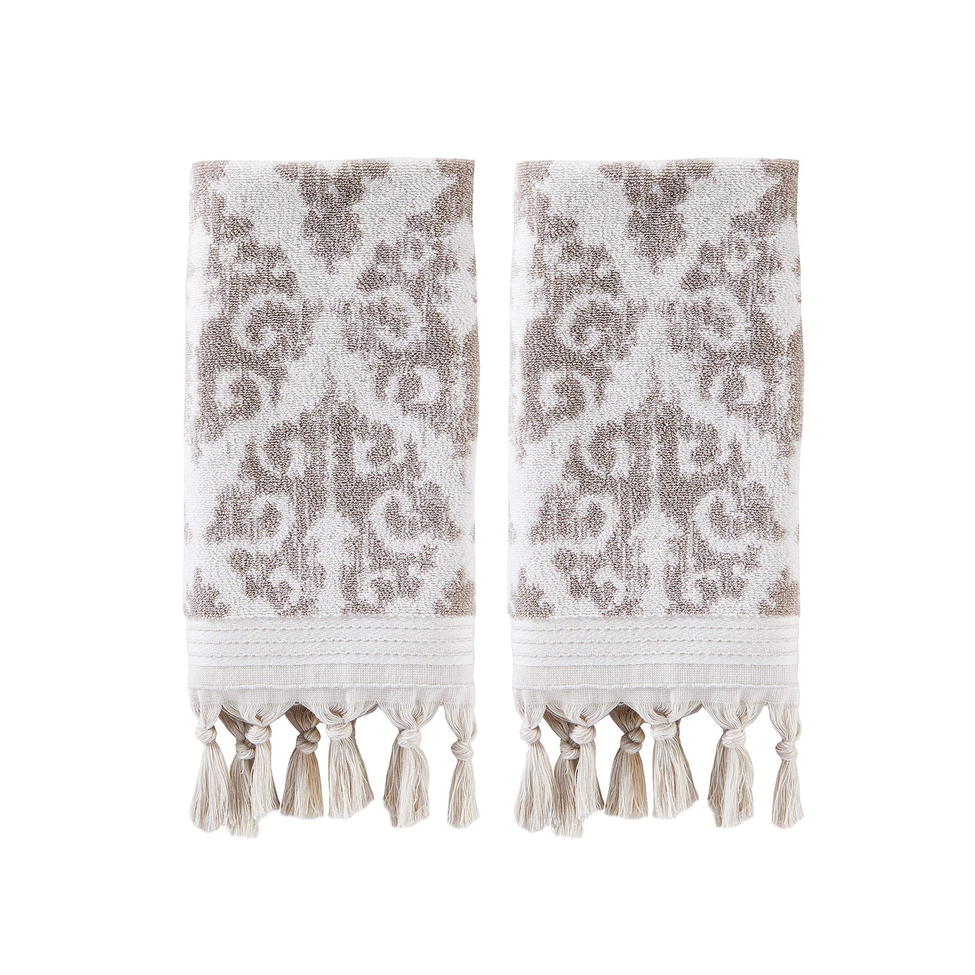 SKL Home Mirage Fringe 100% Turkish Cotton Hand Towel (2-Pack), Taupe , 16x26 in