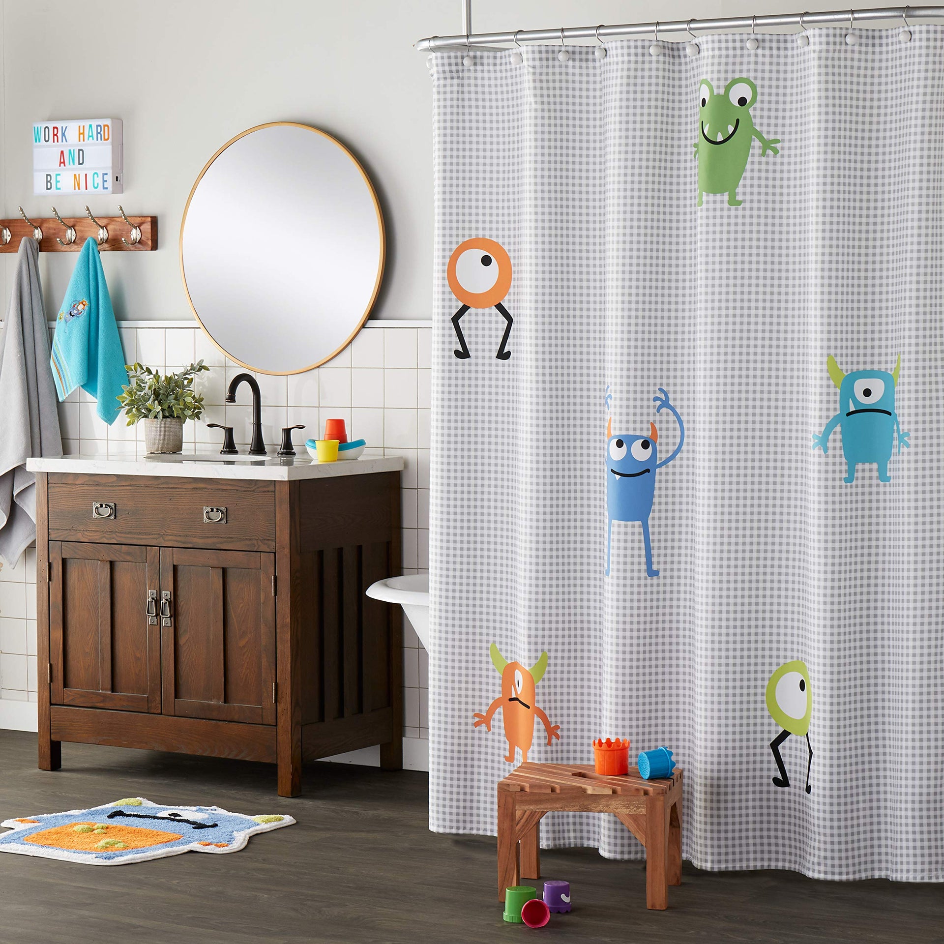 Bright colored monsters adorn a neutral checked background on the Monsters shower curtain and will add imagination to the bathroom routine. Coordinate the shower curtain with the matching Monsters rug and hand towel to complete the look. Made of soft and durable material, the shower curtain is easy care.SKL HOME by Saturday Knight Ltd. brings personality, fun and flair to the most intimate spaces in your home with products ranging from bath accessories and shower curtains, to towels, curtains and beyond. Whether your style is upbeat and modern, or classic and cozy, SKL HOME provides a look to compliment almost any décor. Combining 40+ years’ experience, global design inspiration and premium fabrications, SKL HOME continues to lead the way in home accessories.