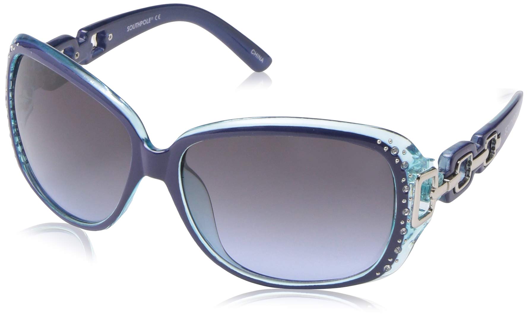 Southpole womens 1017sp Stylish Rhinestone UV Protective Rectangular Sunglasses for Women Trendy Gifts Women 70 mm, Navy & Turquoise, mm US