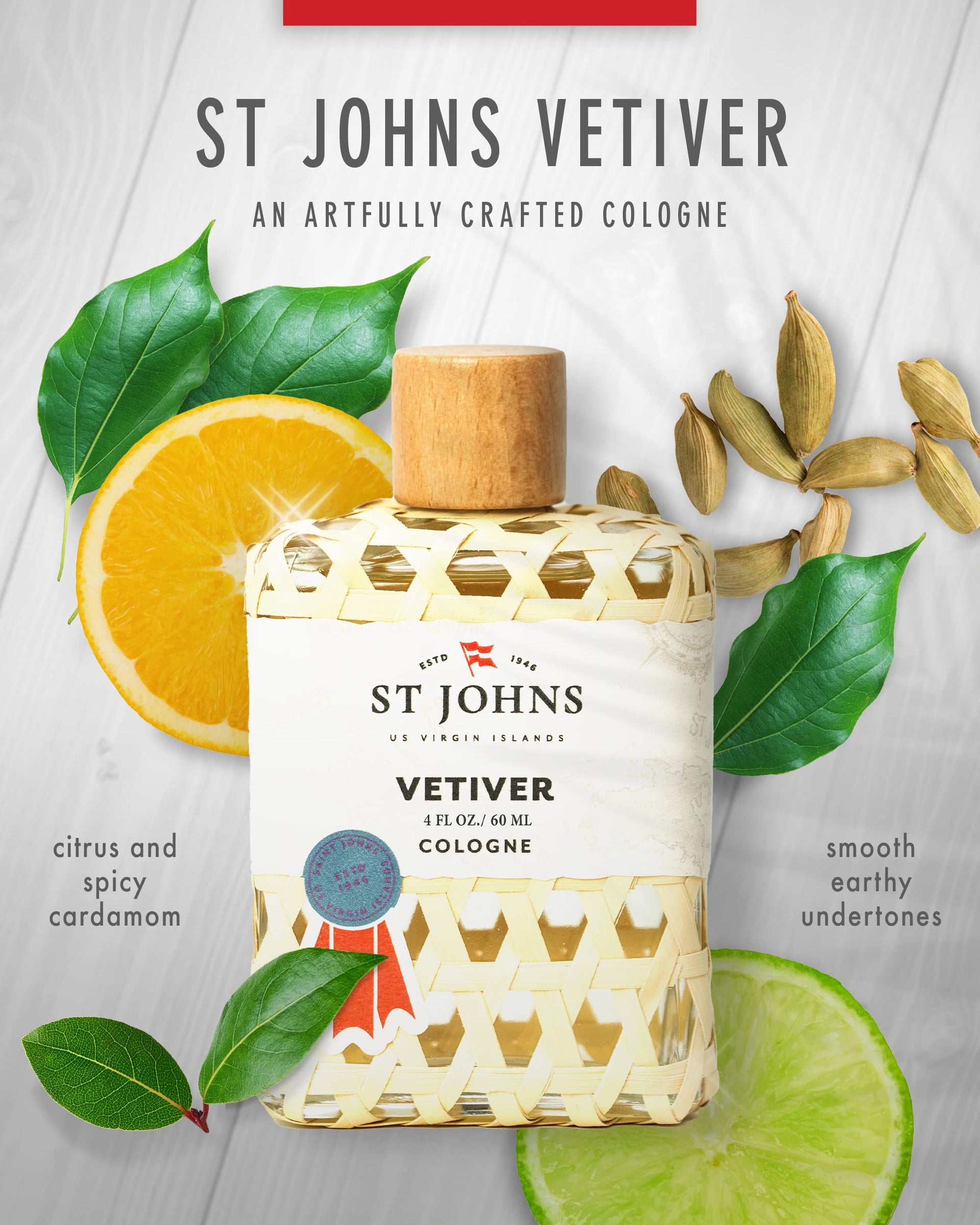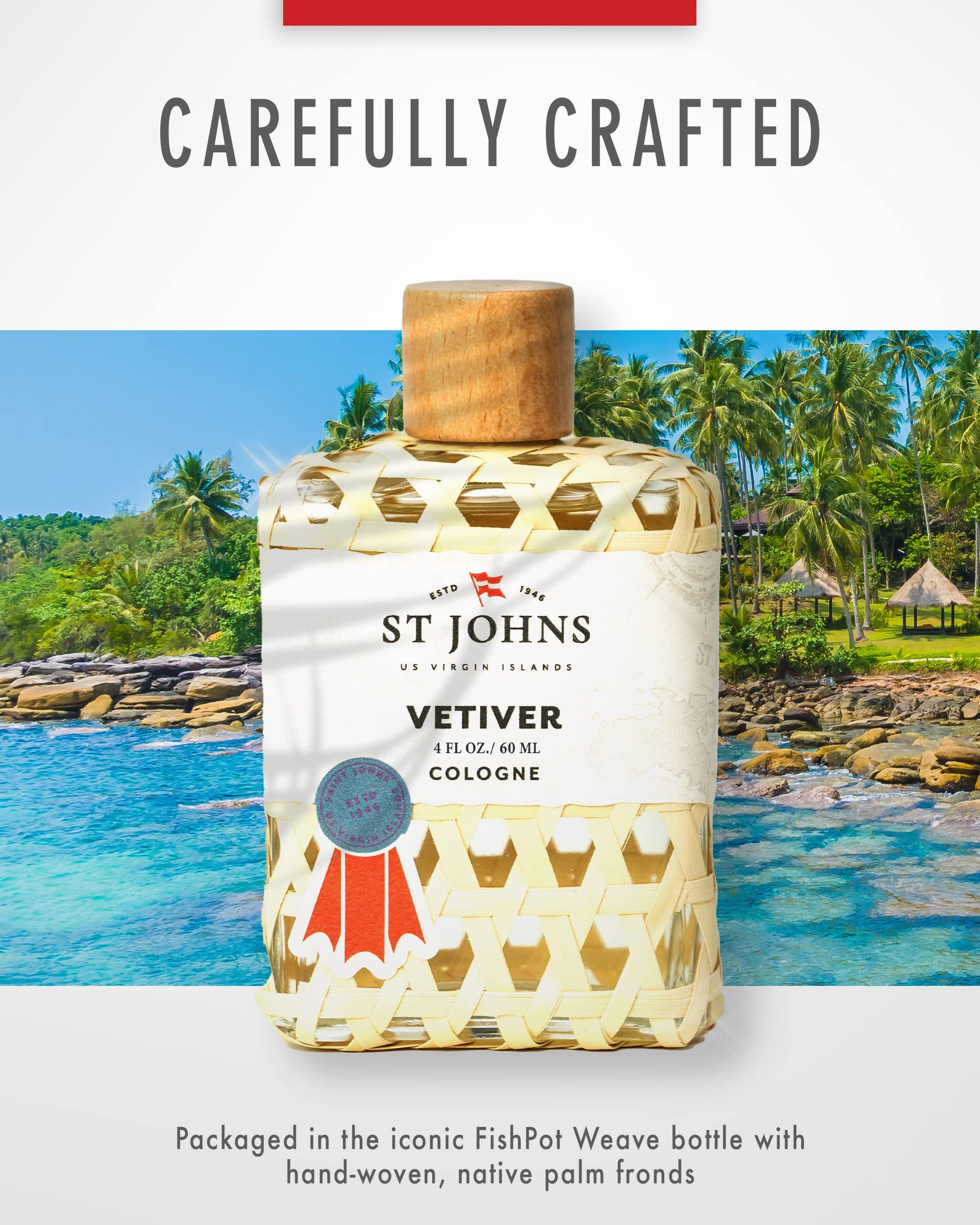 St. John Classic Vetiver Cologne | New Virgin Islands Inspired Fresh Cologne Scent | Sophisticated Cologne Fragrance for Men (4 oz)