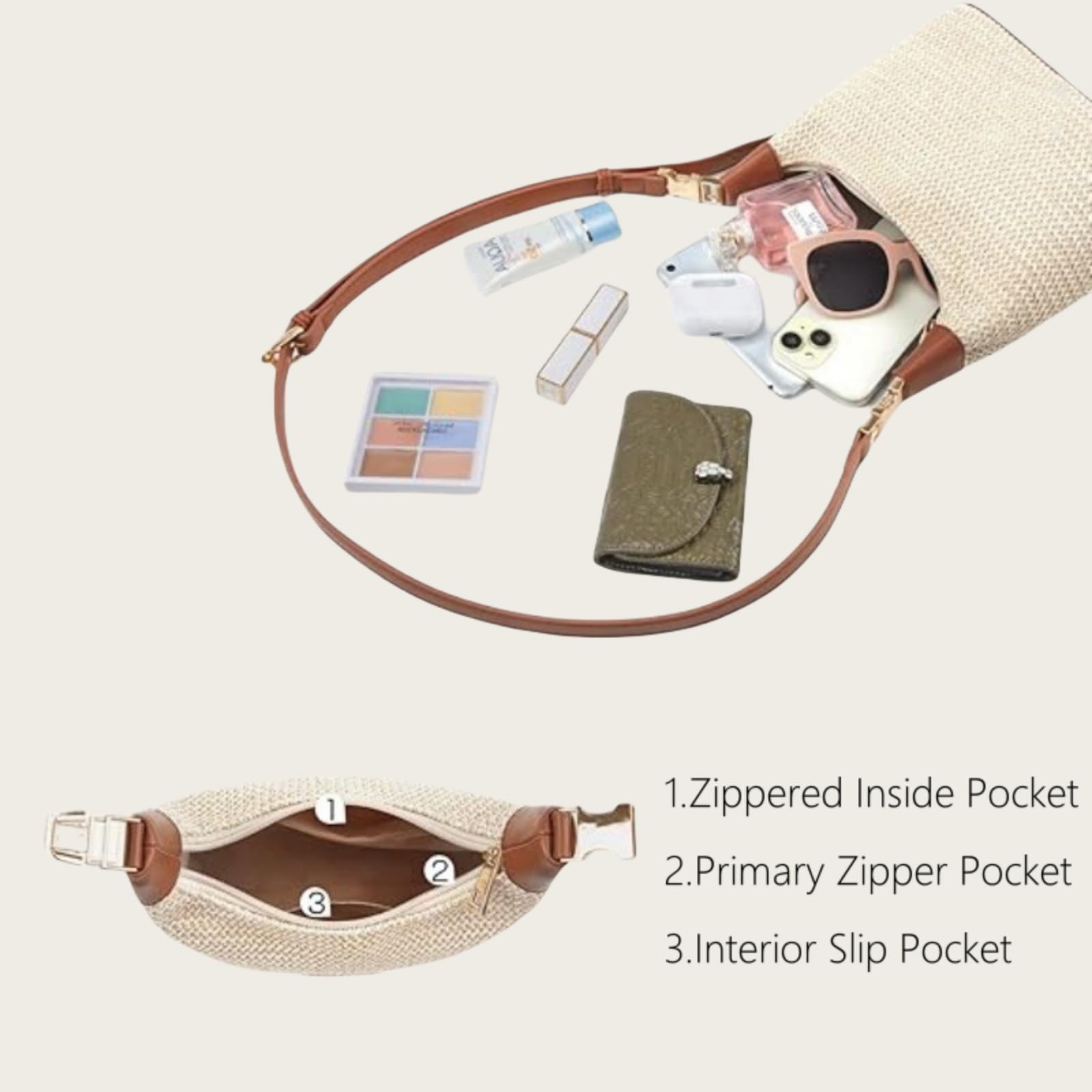 Straw Crossbody Bag for Women, Summer Raffia Handbag Top Handle Woven Tote Purse Vacation Handmade Bucket Clutch Bag (Beige Black)