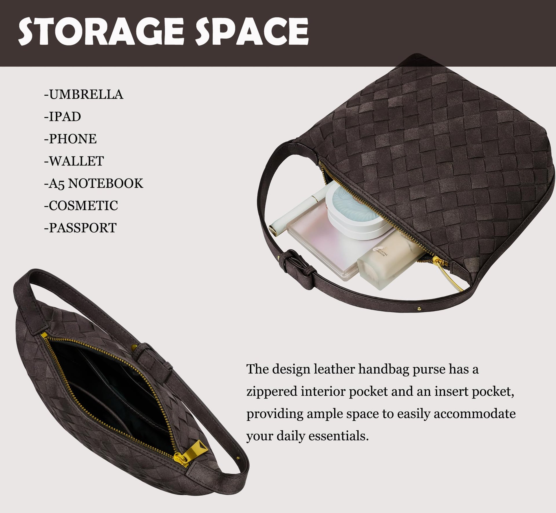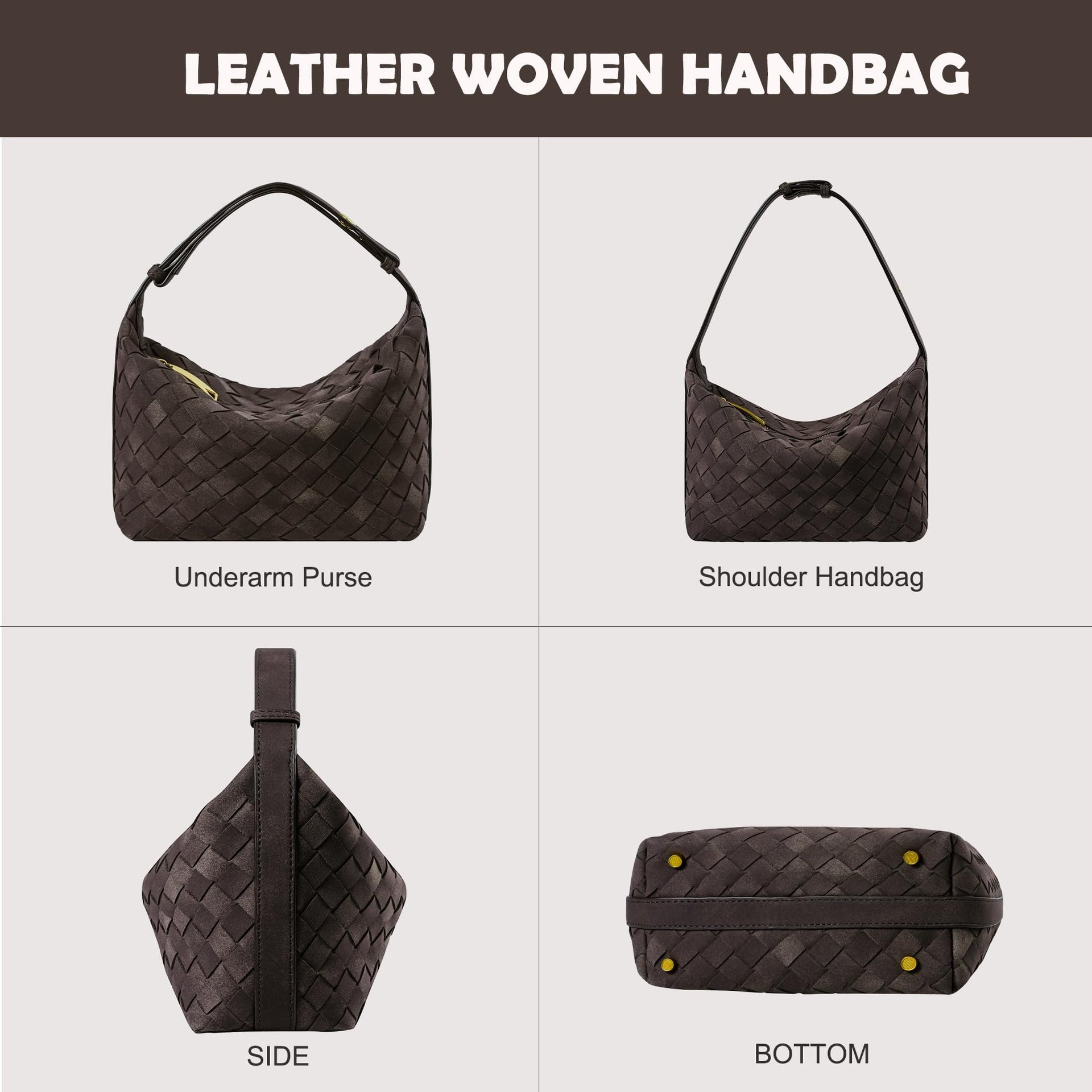 Suede Leather Handbag for Women, Leather Woven Bag, Small Clutch Bag Suede Handbag, Underarm Purse Top-Handle Handbag (Coffee)