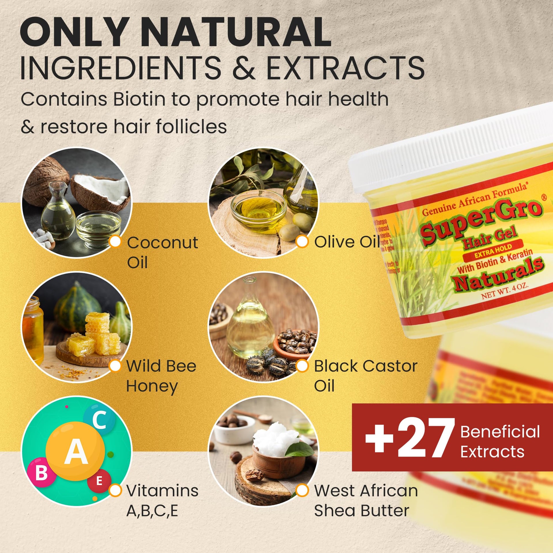 SuperGro Hair Gel with Extra Hold - For Braiding, Locking, Instant Edge Control, Twisting, Retwisting - Natural Grip Jam for Neat Shining - Braid, Loc