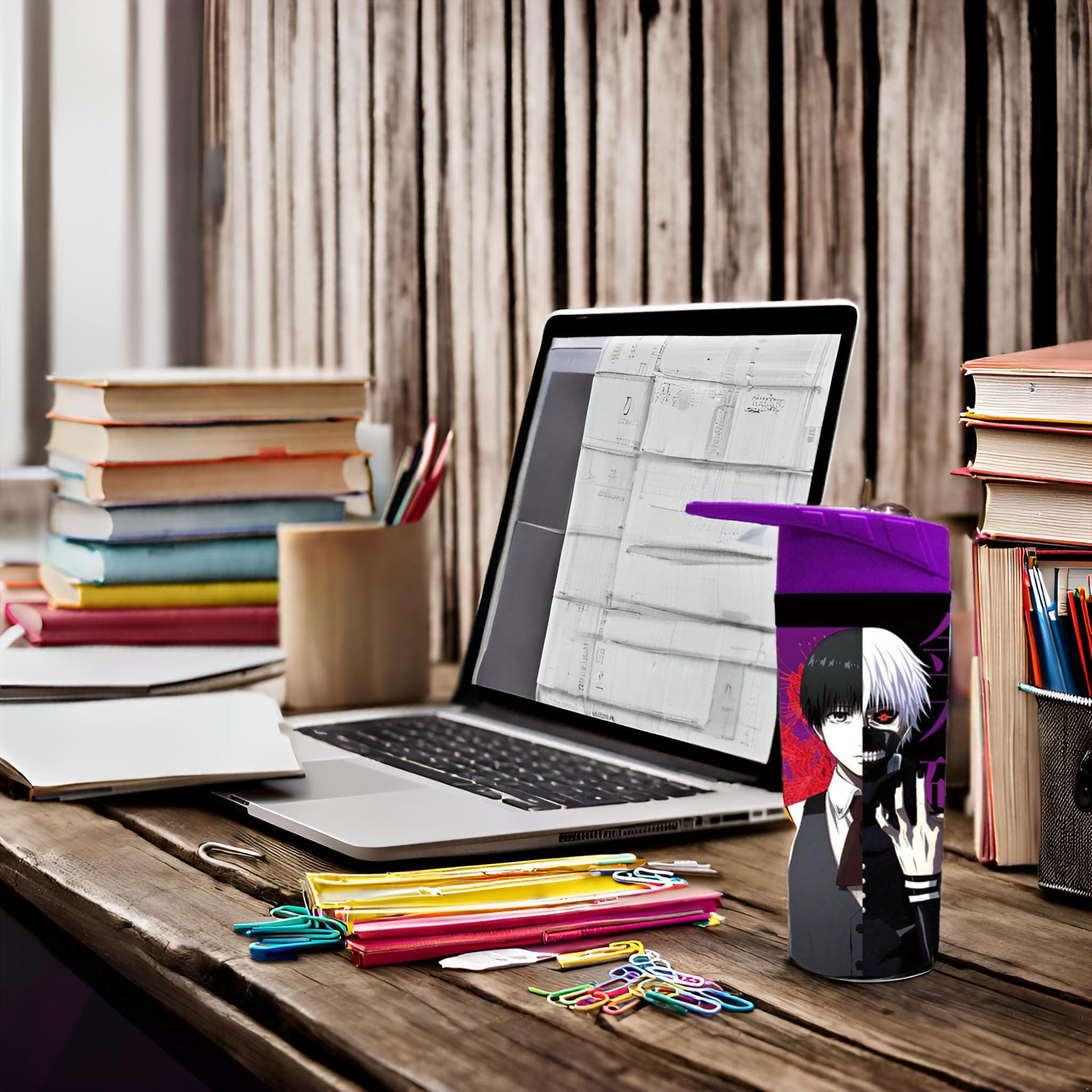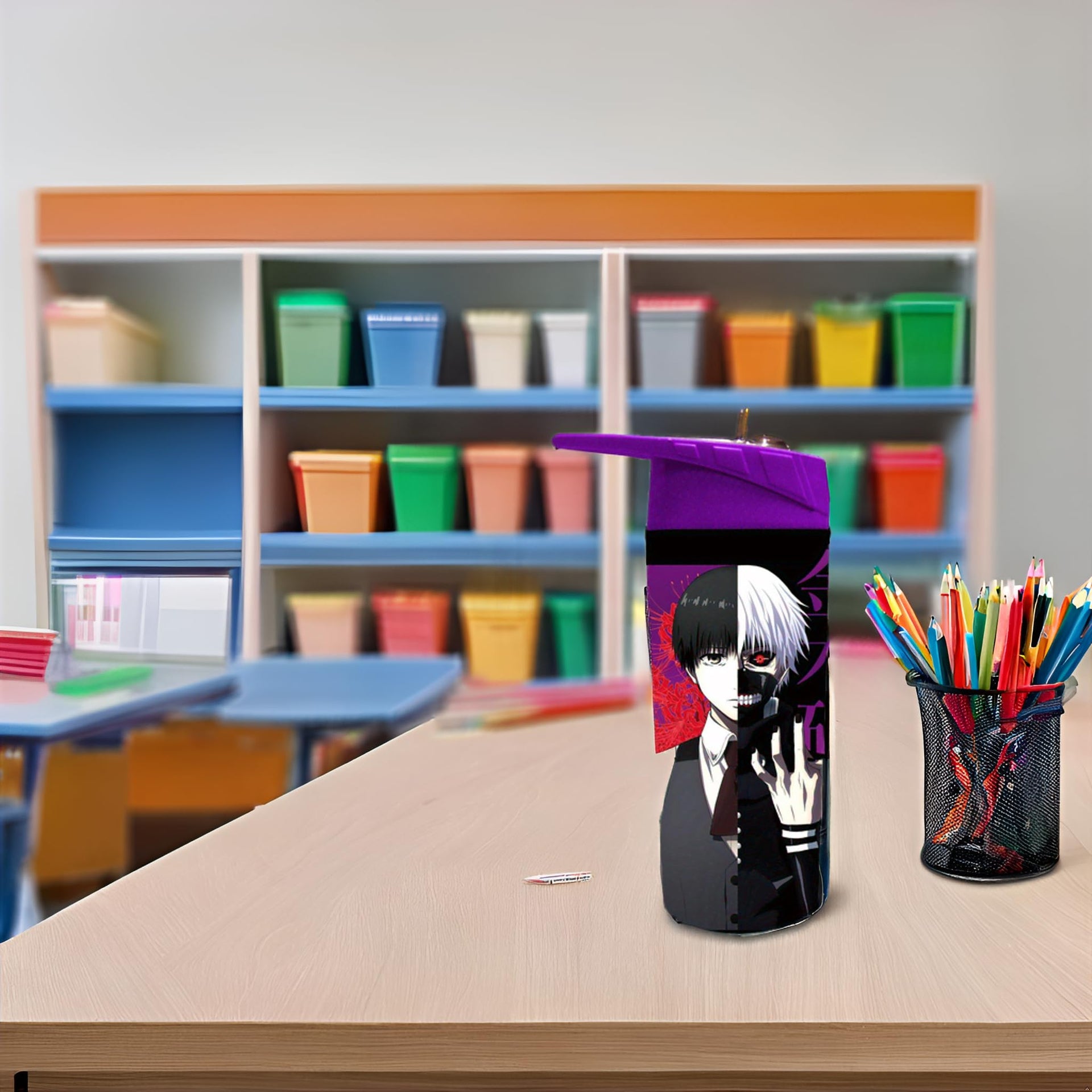 Surreal Entertainment Anime Character Water Bottle with Purple Lid, 16 oz