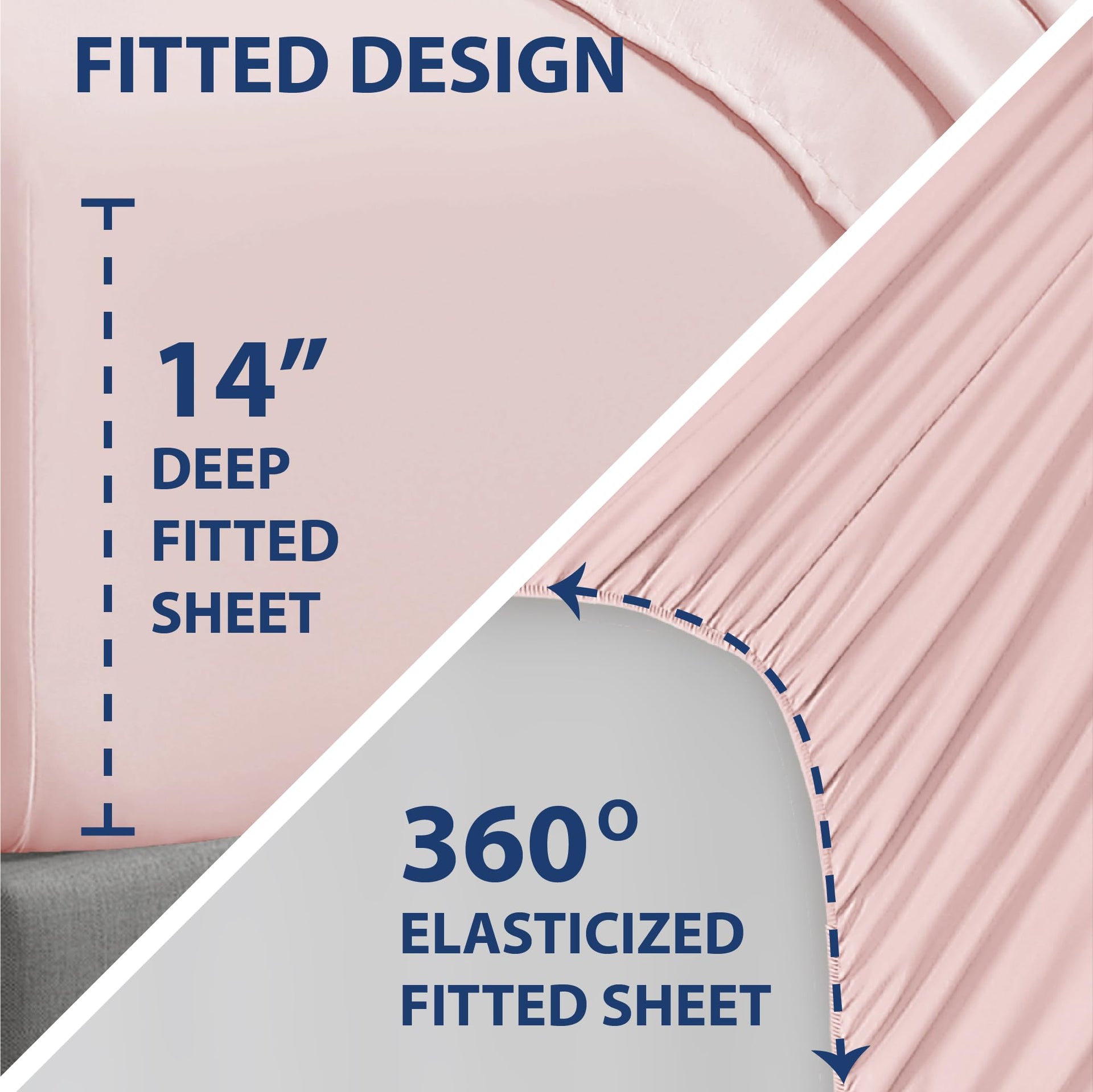 Swift Home Smart Sheets, Ultra Soft Brushed Microfiber 4-Piece Sheet Set, Fitted Bed Sheet with Side Storage Pockets - Blush, Full
