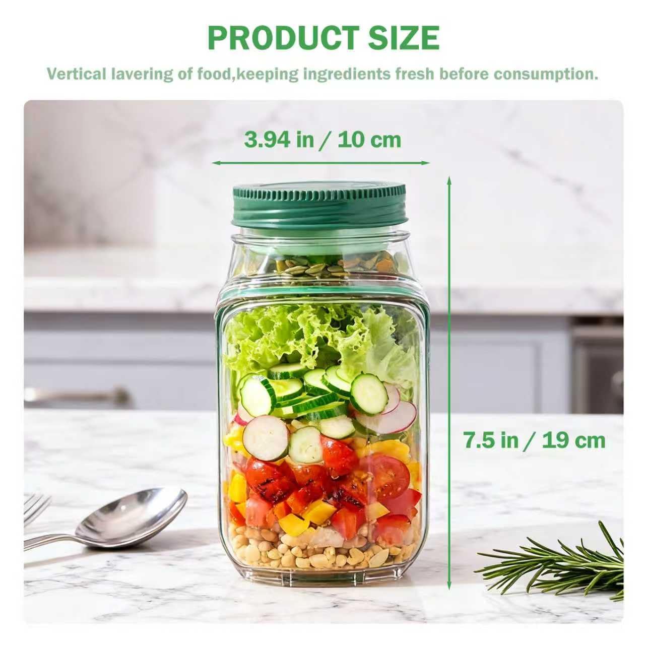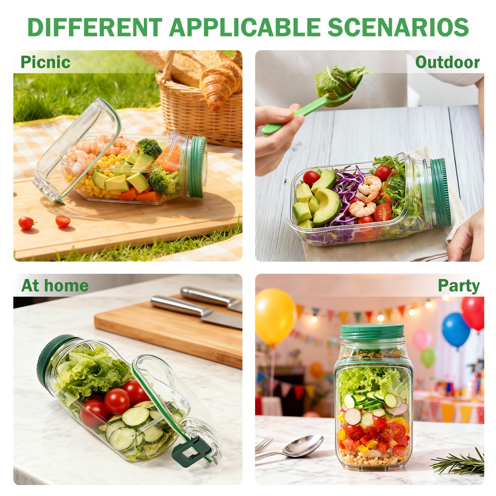 • 【Leakproof & Airtight Design】 Designed with a double-seal, leakproof screw lid, our salad jars prevent any spills or leaks and keep your food fresh. Perfect for carrying salads, snacks, fruits, or yogurt in your lunch bag, picnic basket, or during travel.