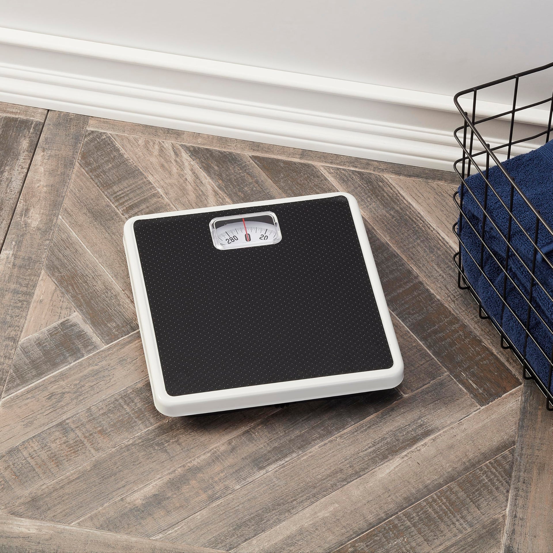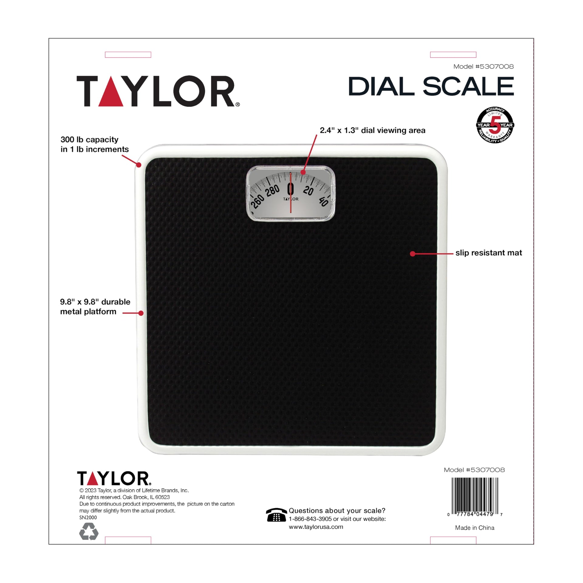 • ACCURATE MEASUREMENTS: This scale measures up to 300 pounds and has a slip-resistant mat for safety. The red pointer clearly shows your weight in 1-pound increments on the dial.