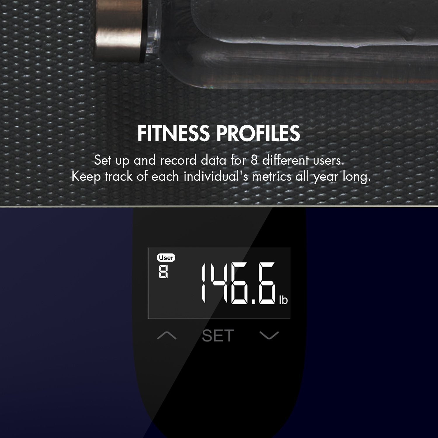 • Create up to 10 user profiles with the free App on this bathroom scale and sync the data to your smartphone with Bluetooth.