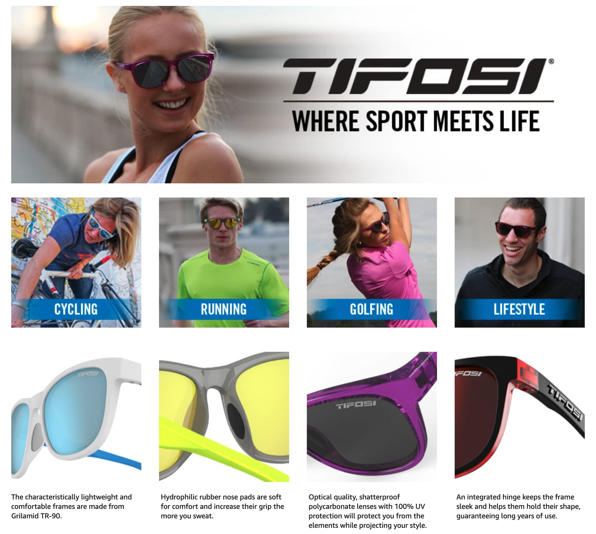 - FRAME TECHNOLOGY ➤ Frame features integrated hinge which never pulls hair, hydrophilic nose pads for increased gripping, and Tifosi Glide technology allows the frame to slide on comfortably and provide a no-slip fit