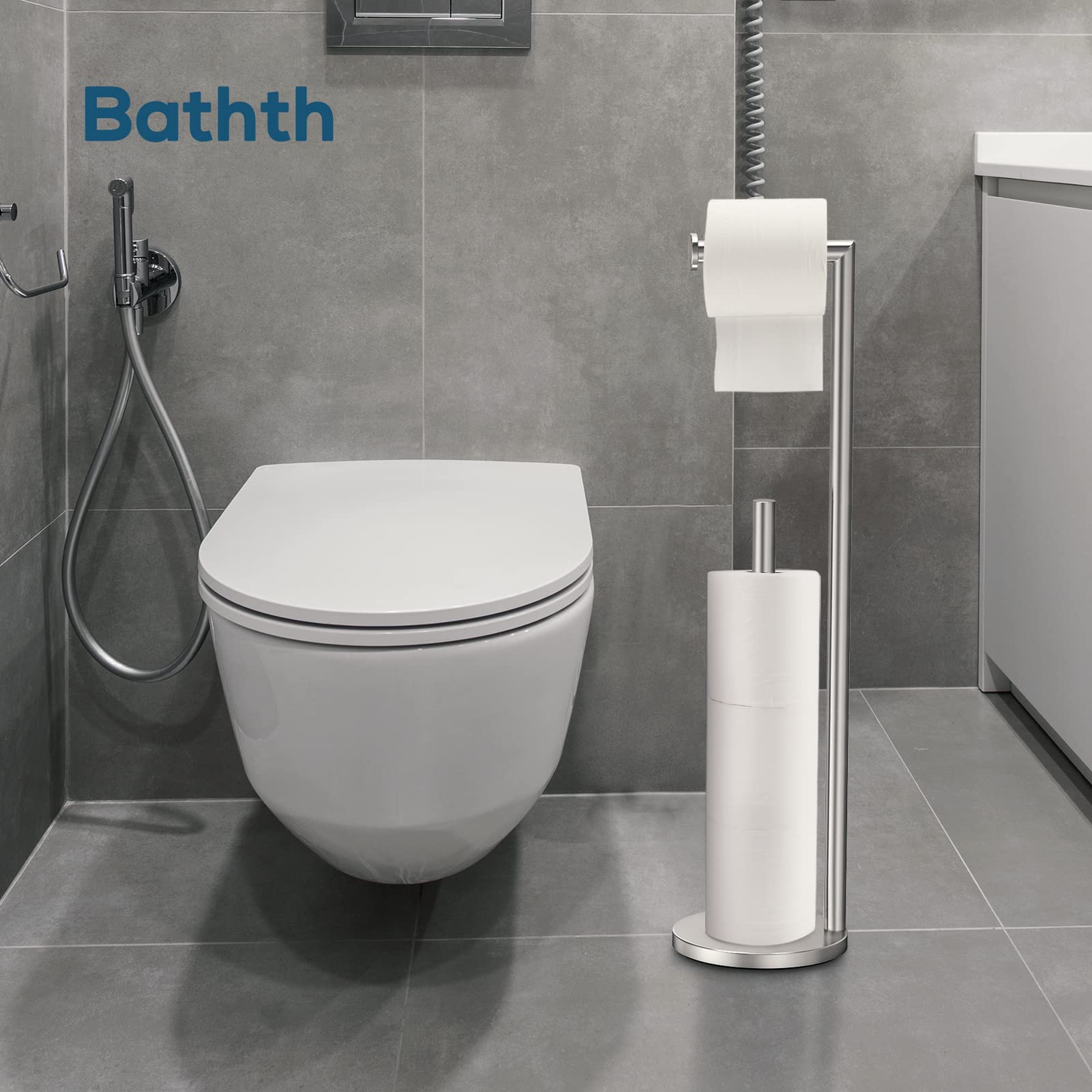 - Space Saving: Toilet paper holder stand dispenses one roll and holds three spare rolls.