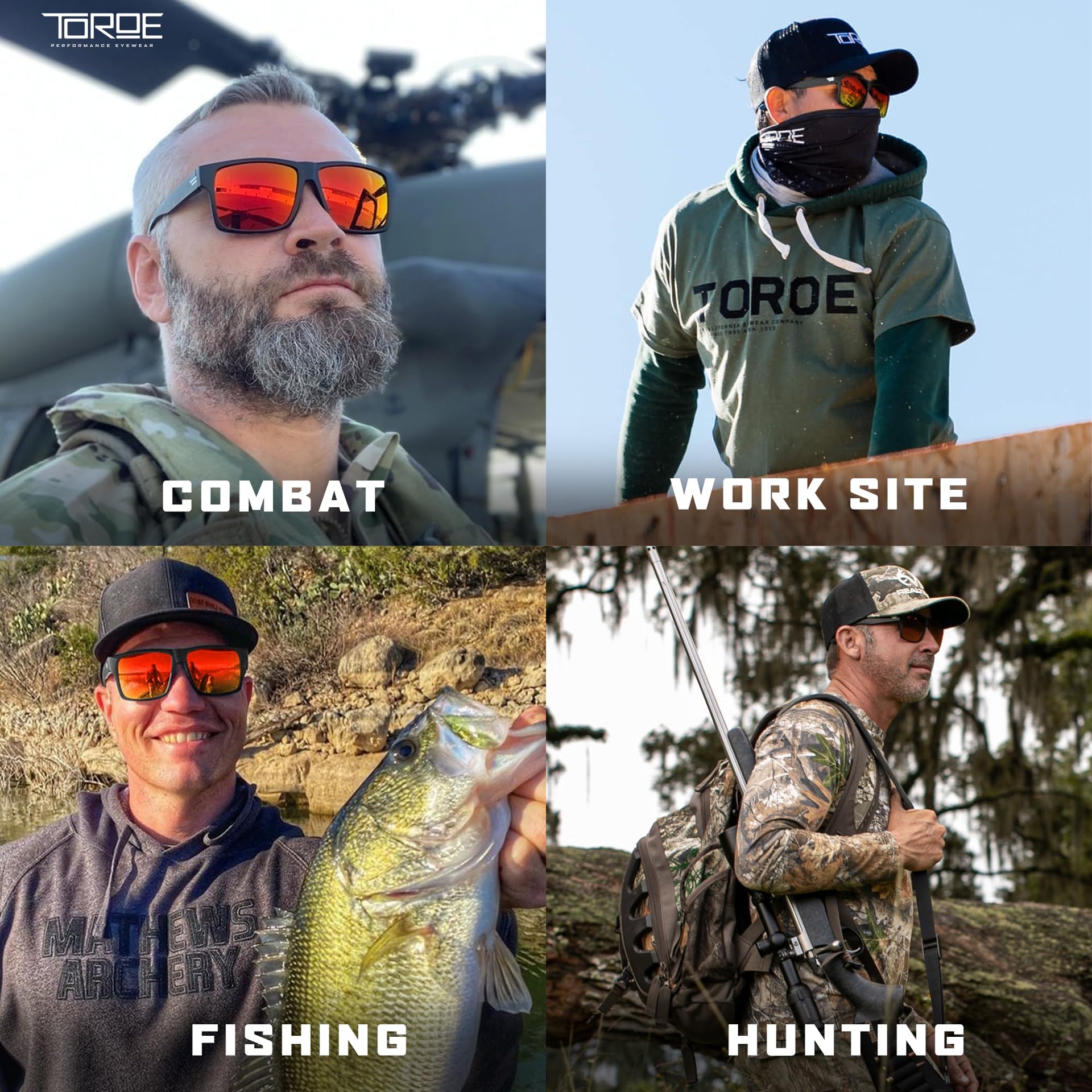 TOROE Eyewear Matte Black RANGE XL Frame Sunglasses Light Weight TR90 Frame, Polarized Polycarbonate Lens (Matte Black | Black Emblem, Fire Red (C3))