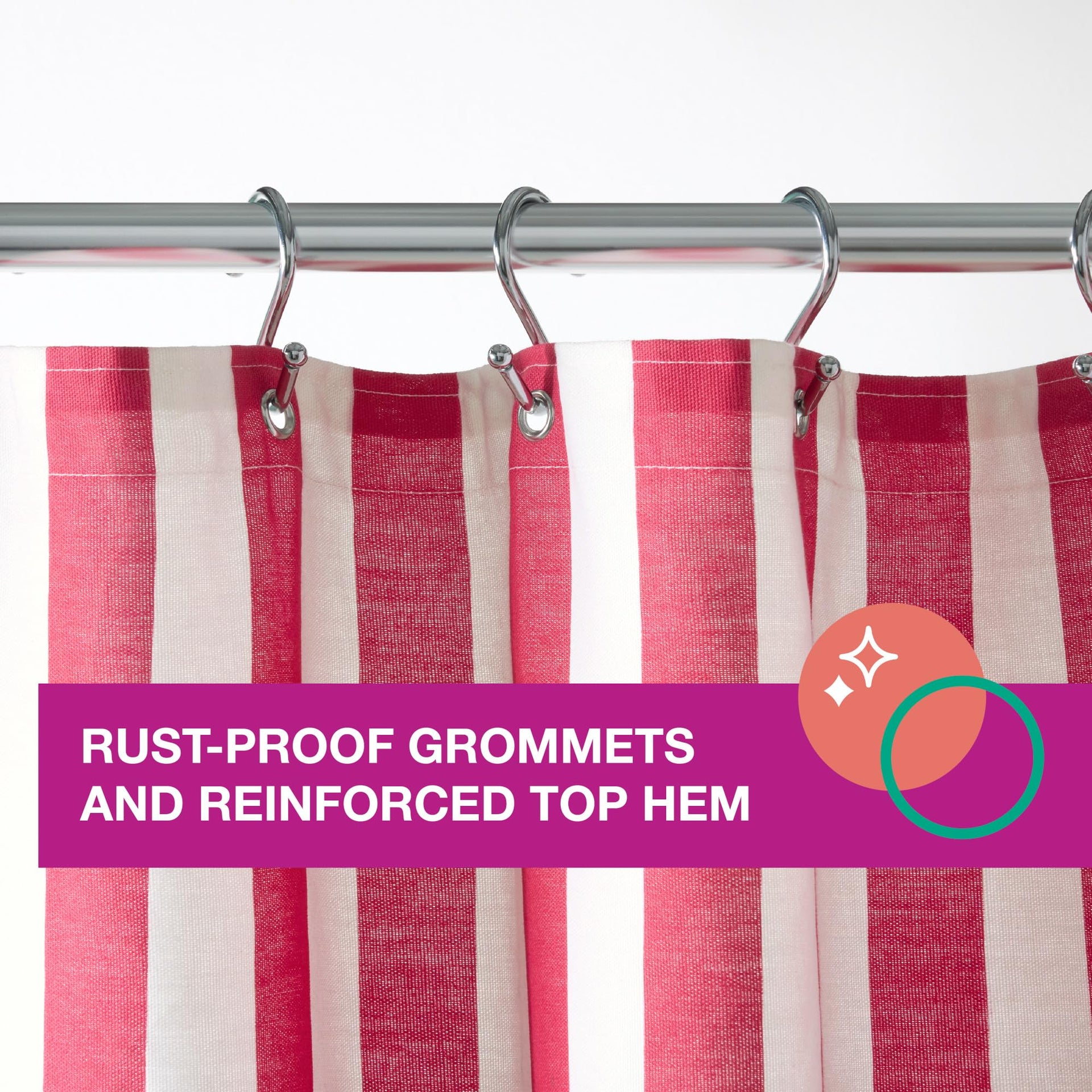 • Rust-proof grommets for hanging (shower curtain hooks not included)