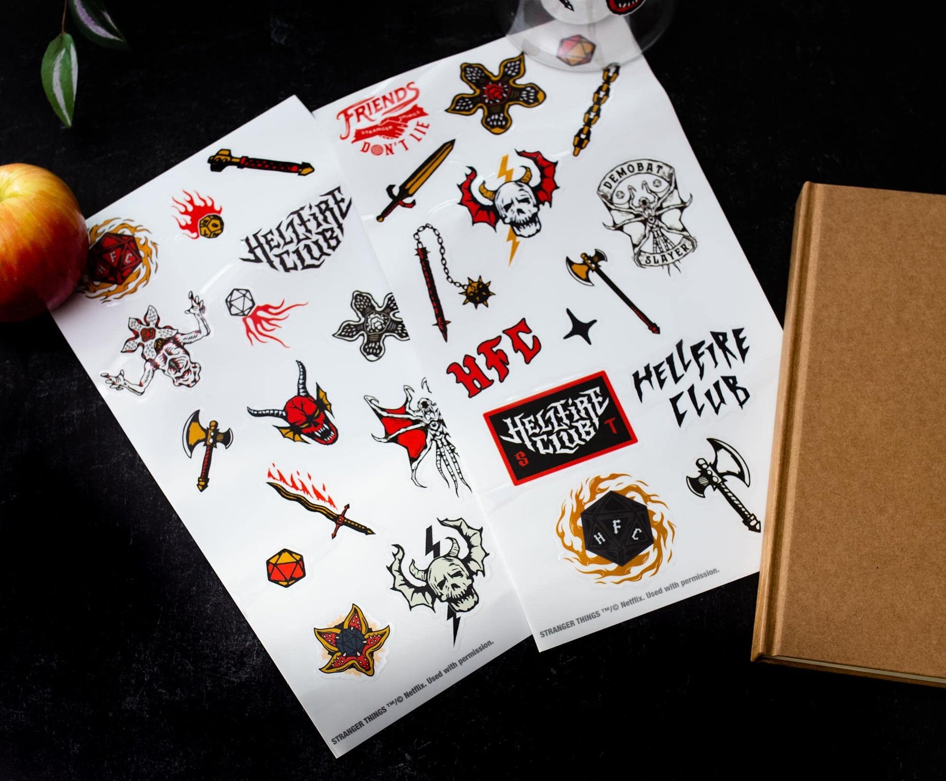 YOUR THIRST IS ALMOST AT AN END Gather your party and prepare to smite some evil with this exclusive water bottle featuring the Hellfire Club from Stranger Things. Heading into the Upside Down? It's probably a bad idea to drink the water over, er, under there. We'd recommend equipping this water bottle featuring the graffiti-inspired design of the best RPG group in central Indiana, the Hellfire Club. And if you don't like how it looks, then it's time to mod. Use anything from the two included sticker sheets to make it look extra rad. IF I PLAY, DO I GET ONE OF THOSE COOL T-SHIRTS? Don't have time for a long rest? Use this enchanted vessel to give you the boost you need for a marathon session, fighting anything from Demogorgons up to Vecna himself. The screw top keeps all your precious potions safely contained and doubles as a convenient carrying handle for taking on your travels into the other realms. You'll roll a natural 20 when you get this officially licensed drinkware inspired by Stranger Things. CARE INSTRUCTIONS Hand-wash only Not dishwasher safe Not microwave safe