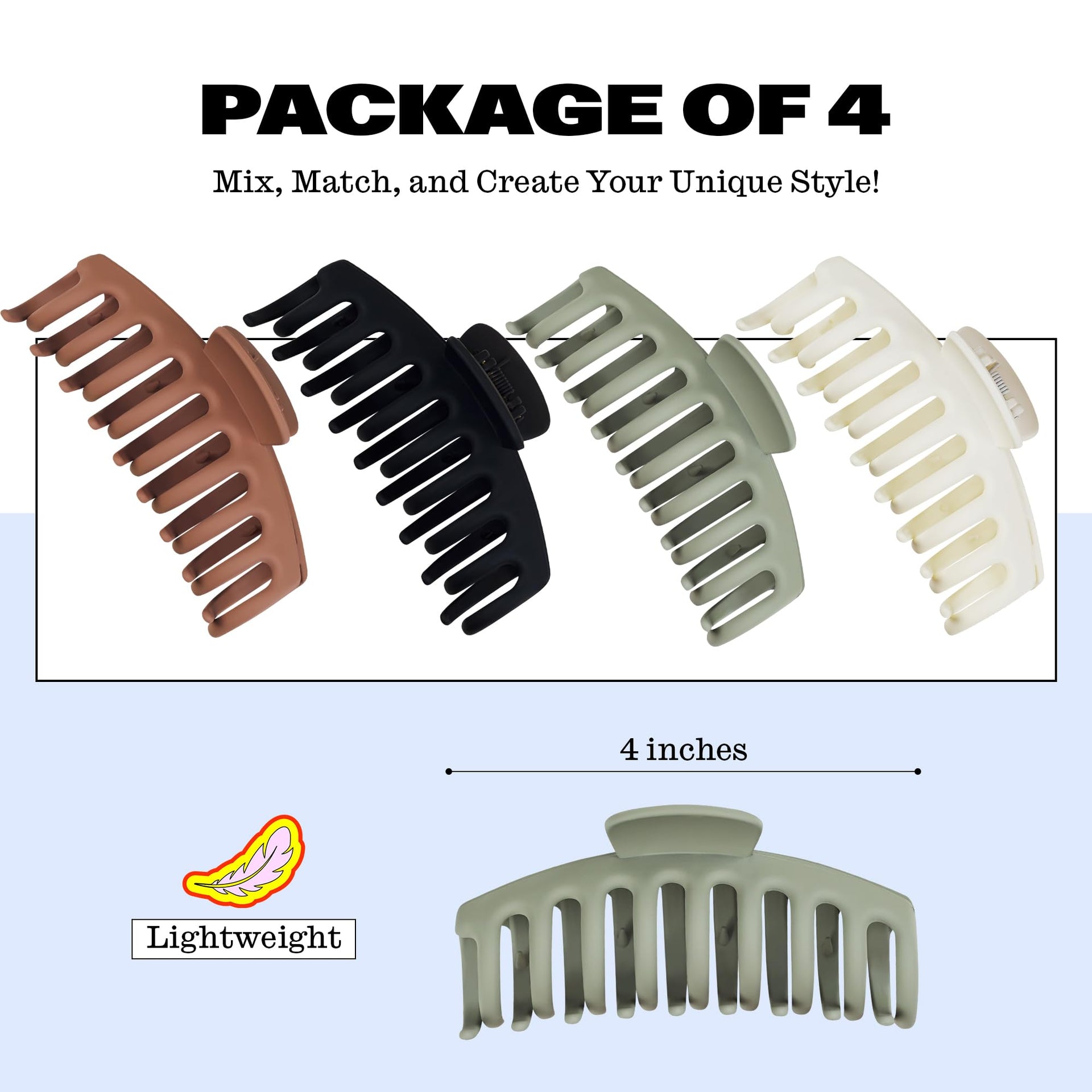 • CLAW HAIR CLIPS - Elevate your hairstyling game with the Trademark Beauty Claw Clips Set, featuring four different colored clips to complement your mood and outfit effortlessly