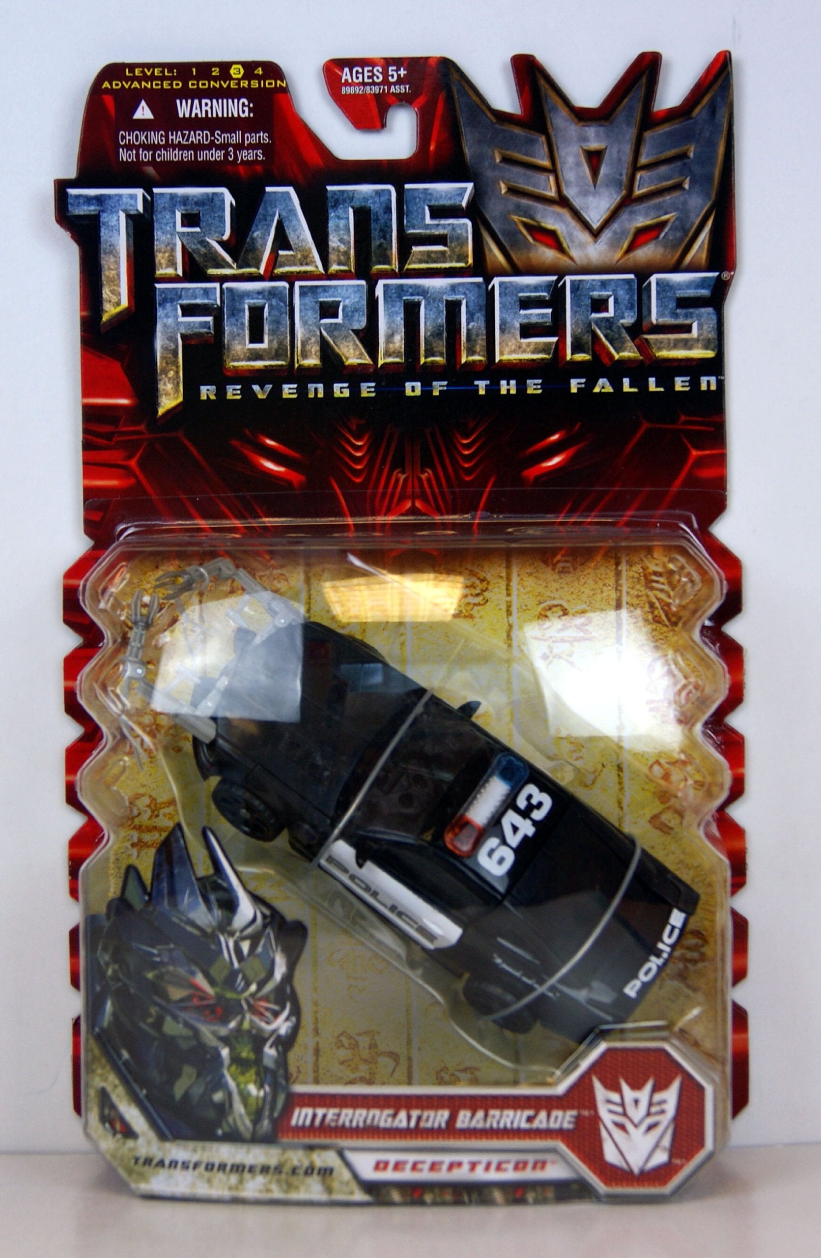 From the ManufacturerRepaired and retrofitted after the battle of Mission City, BARRICADE elected to remain on Earth while STARSCREAM returned to CYBERTRON. He has devoted his time on Earth to gathering intelligence for the inevitable rise of the DECEPTICONS. He stalks and captures important humans, then scans, interrogates and disposes of his captives using the highly sensitive probes built into his vehicle mode. Recreate exciting movie scenes or stage your own living room battles with this DECEPTICON defender! This fierce-looking figure features a spring-loaded punch attack in robot mode and snap-on probe arms in Saleen S281 Mustang Police car mode! Race into battle with and take on AUTOBOT forces with this super-cool sidekick!