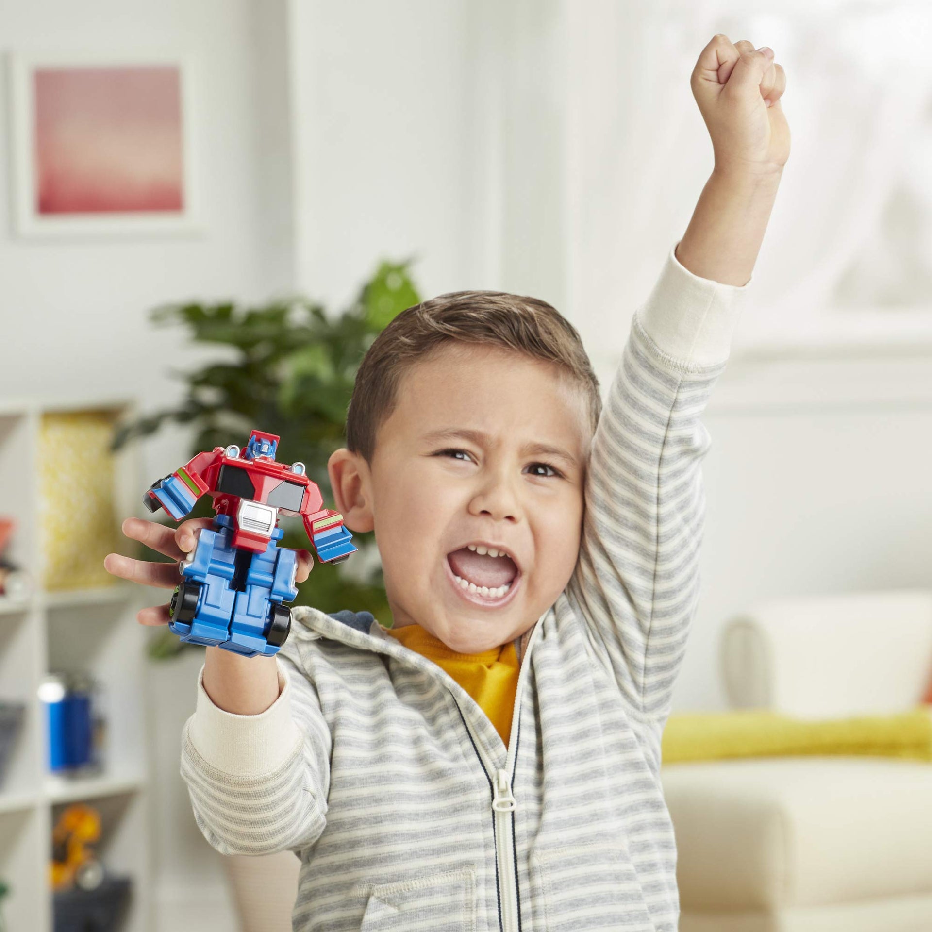 Imagine helping Optimus Prime save the day! As a mighty truck, Optimus Prime is ready to take to the streets and charge to the rescue! Kids ages 3 and up can pretend there is a dangerous situation unfolding and convert the brave 4.5-inch Optimus Prime action figure from a robot to a truck they can imagine racing to the scene for a courageous rescue.