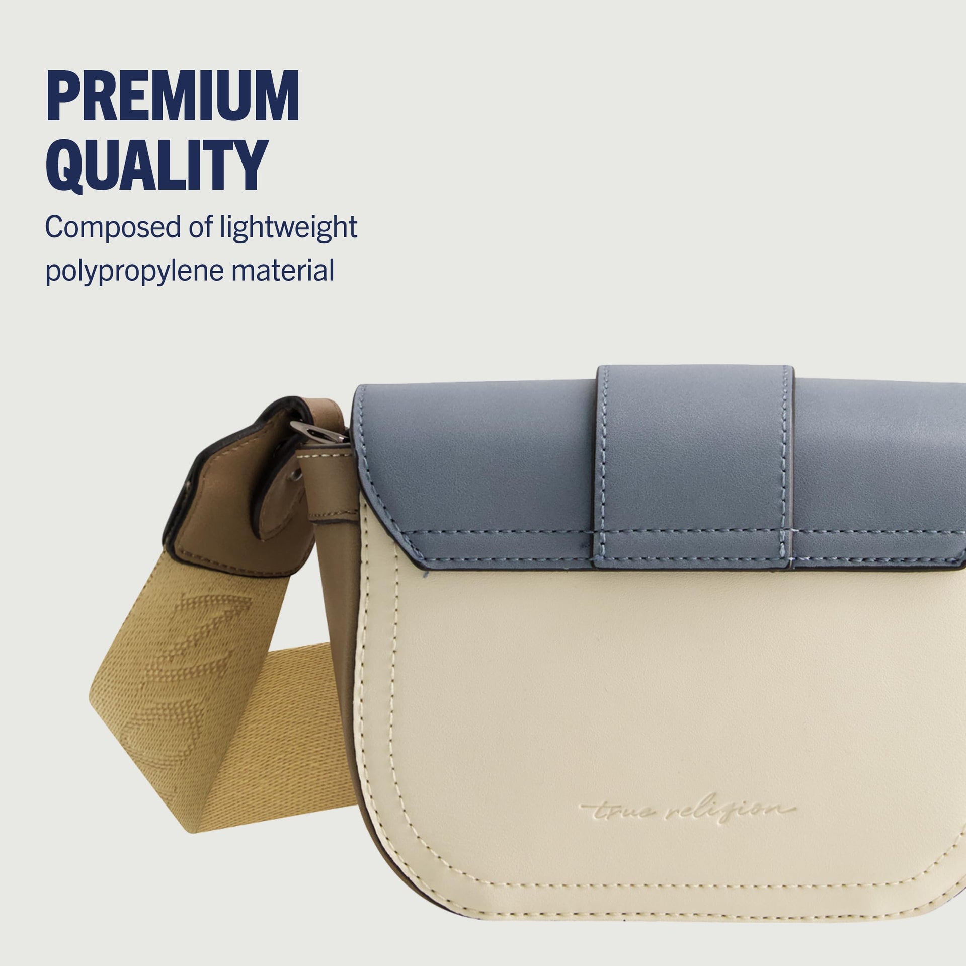 True Religion Women's Crossbody Bag, Mini Flap Adjustable Shoulder Handbag Purse with Horseshoe Logo, Blue