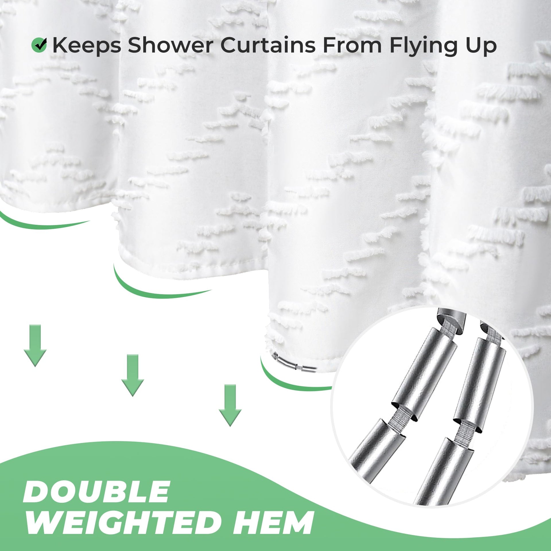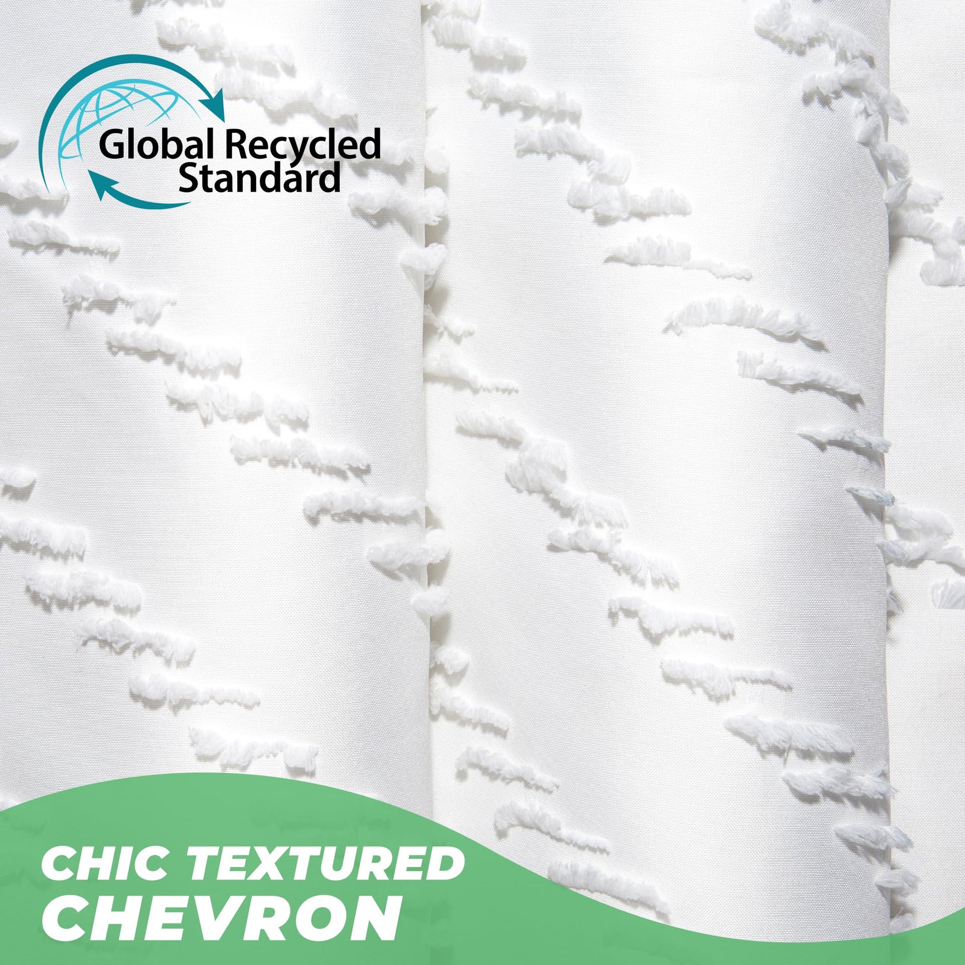 TURKIO White Boho Fabric Shower Curtain 72 x 72 Inches, Modern Shabby Chic Textured Tufted Chevron Striped Minimalist Cloth Bathroom Shower Curtain