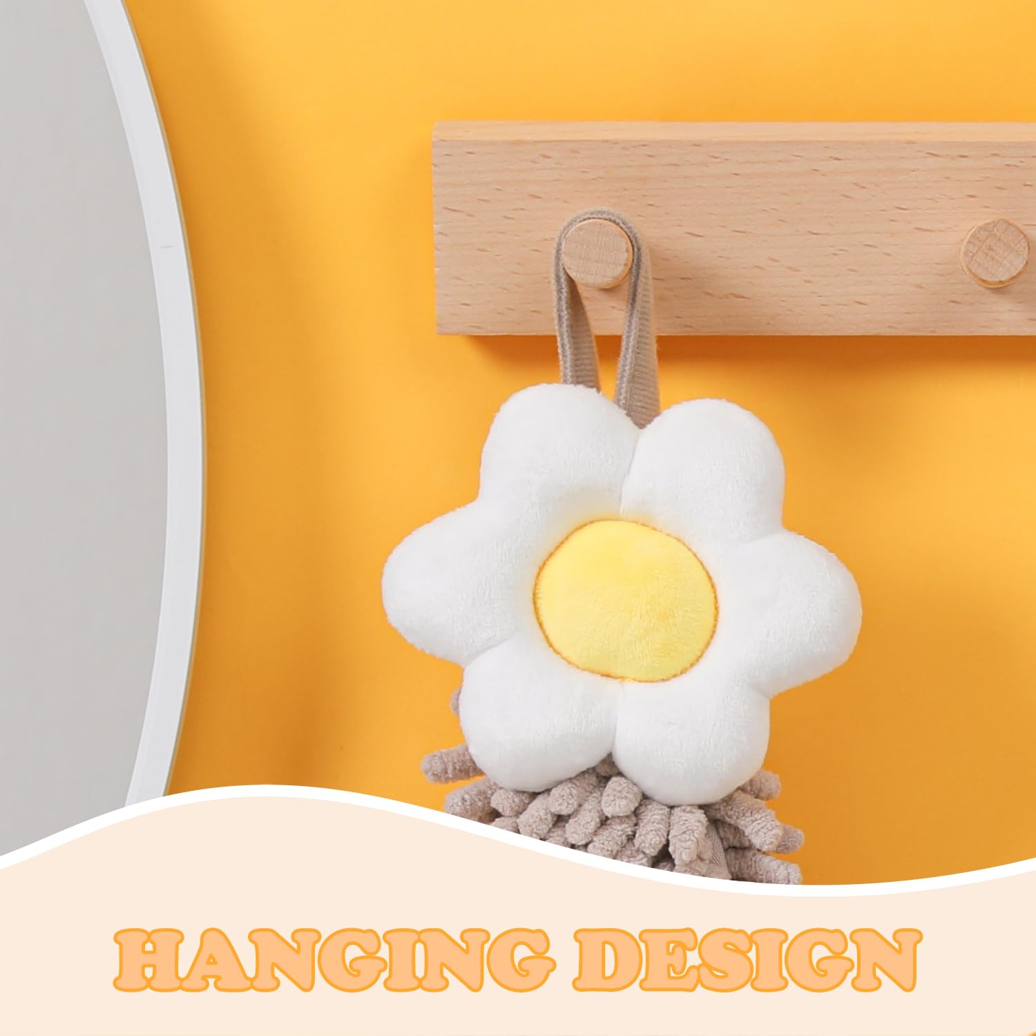 Tyrafry Chenille Cute Flower Hand Towels, Super Soft Water Absorbent Decorative Hand Towels with Hanging Loop Machine Washable Kitchen Towels, Brown