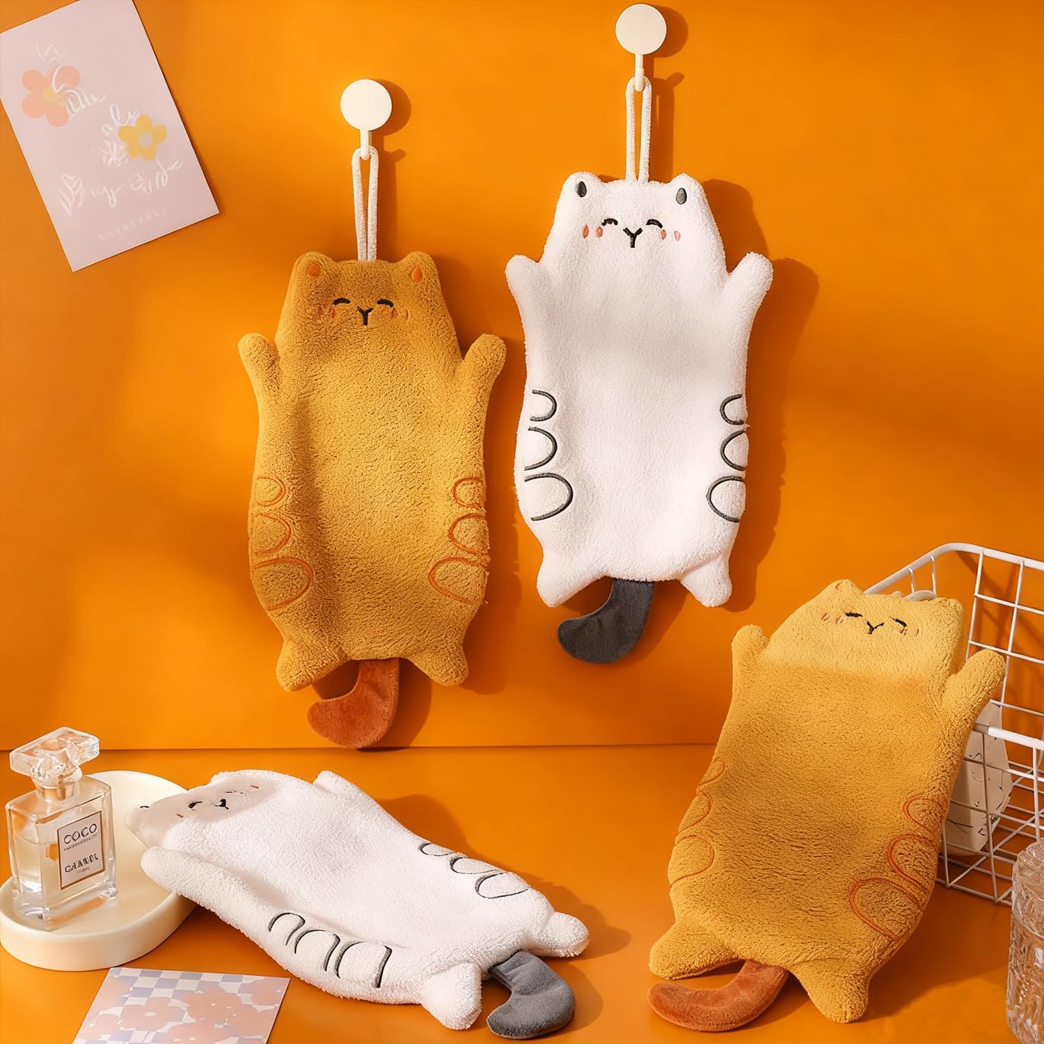 • HANGING DESIGN: Cartoon Animal cat hand towels has a hanging lanyard on the top, easy to hang and store. Delicate edged make it durable longlasting. Can be used as kitchen hand towels, bathroom hand towes, and cleaning cloths.
