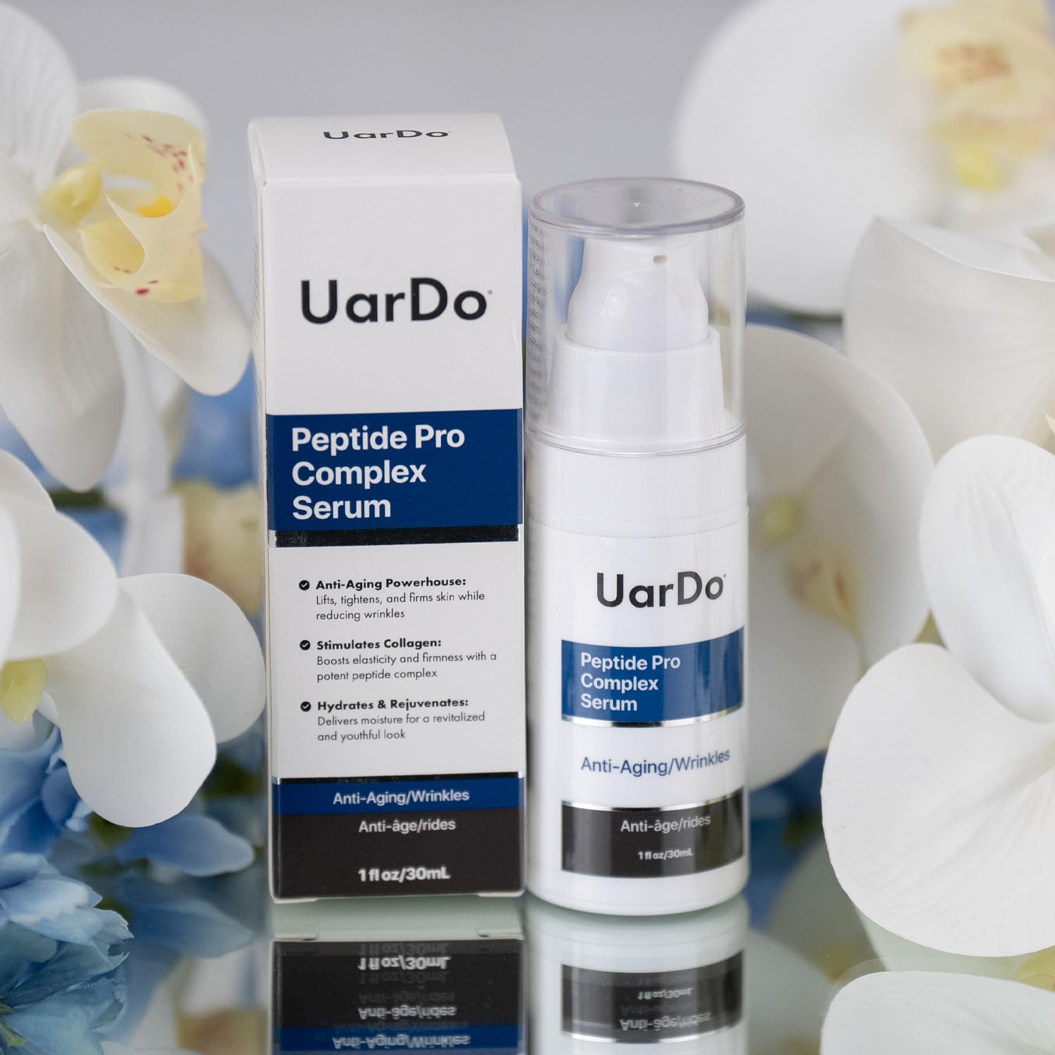 Revitalize your skin with Uardo Peptide Pro Complex Serum, an innovative formulation designed to target the signs of aging at a cellular level. Packed with potent peptides including Acetyl Octapeptide-3 and Acetyl Hexapeptide-8, this serum helps stimulate collagen production, reducing the appearance of fine lines and wrinkles. Infused with hydrating ingredients like Glycerin, Sodium Hyaluronate and Betaine, it replenishes your skin's moisture, resulting in a smoother, plumper, and more youthful-looking complexion Uardo Peptide Pro Complex Serum is a must-have for individuals of all skin types, particularly those experiencing signs of aging such as fine lines and wrinkles. This advanced formulation is designed to lift, tighten, and firm the skin, all while reducing the depths of wrinkles. The serum's peptide complex stimulates collagen production, an essential component in maintaining skin's elasticity and firmness. Coupled with its hydrating properties, this anti-aging serum not only combats signs of aging but also keeps your skin moisturized. For a comprehensive approach to skin rejuvenation and hydration, look no further than the Uardo Peptide Pro Complex Serum.