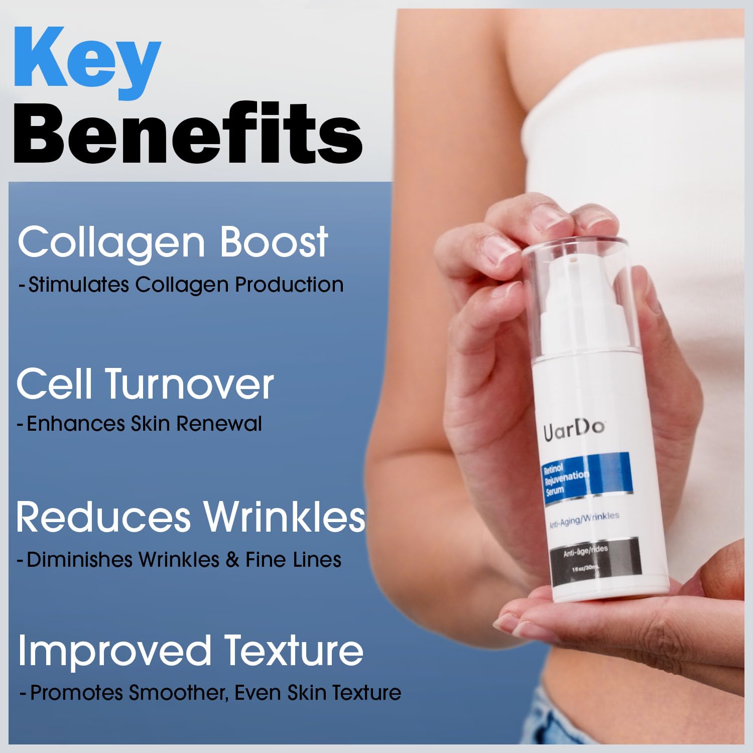 Uardo Retinol Rejuvenation Serum 1 Fl Oz/ 30 ml - usn102 | Smooth Lines & Wrinkles | With Hyaluronic Acid | Moisturizing for the Skin | For Face