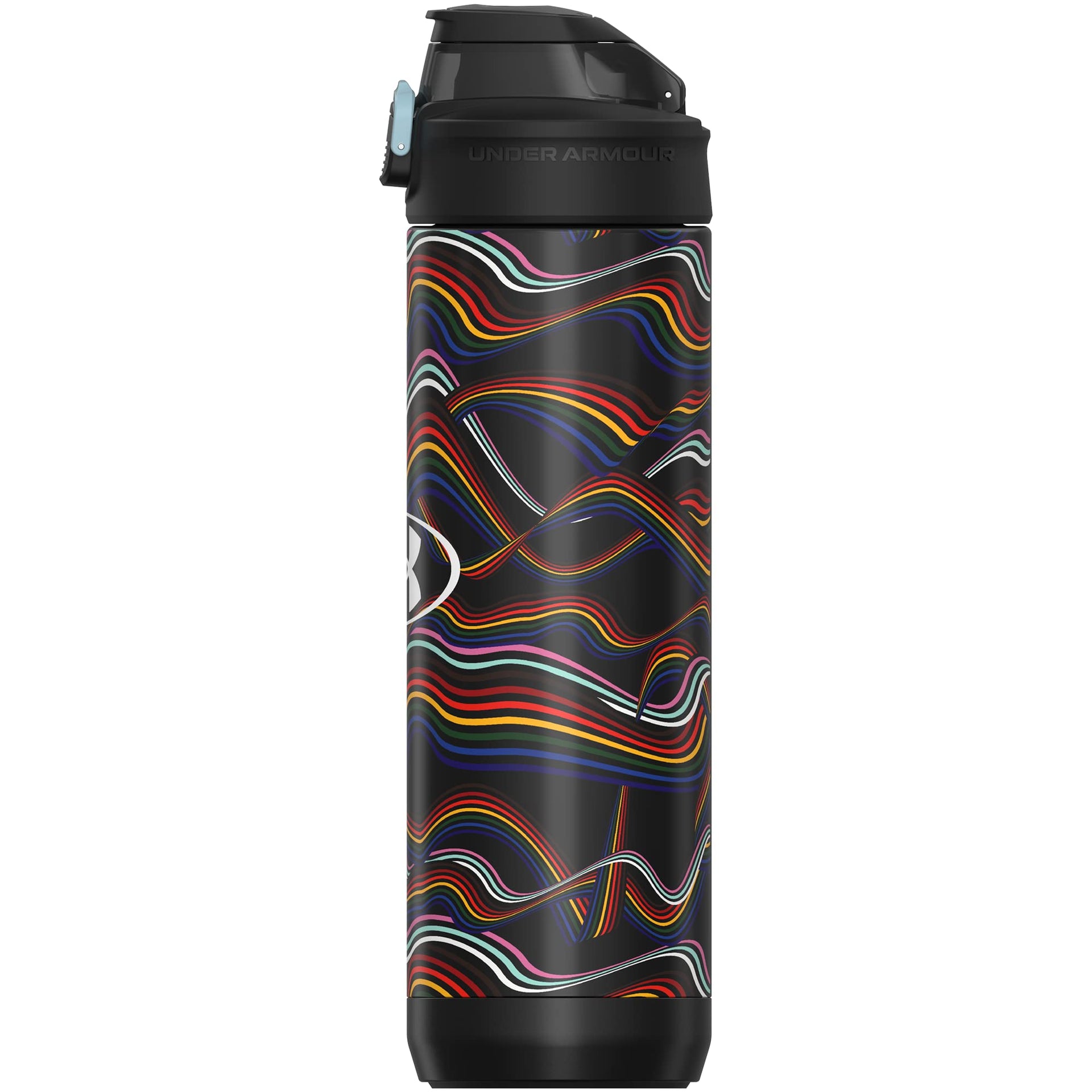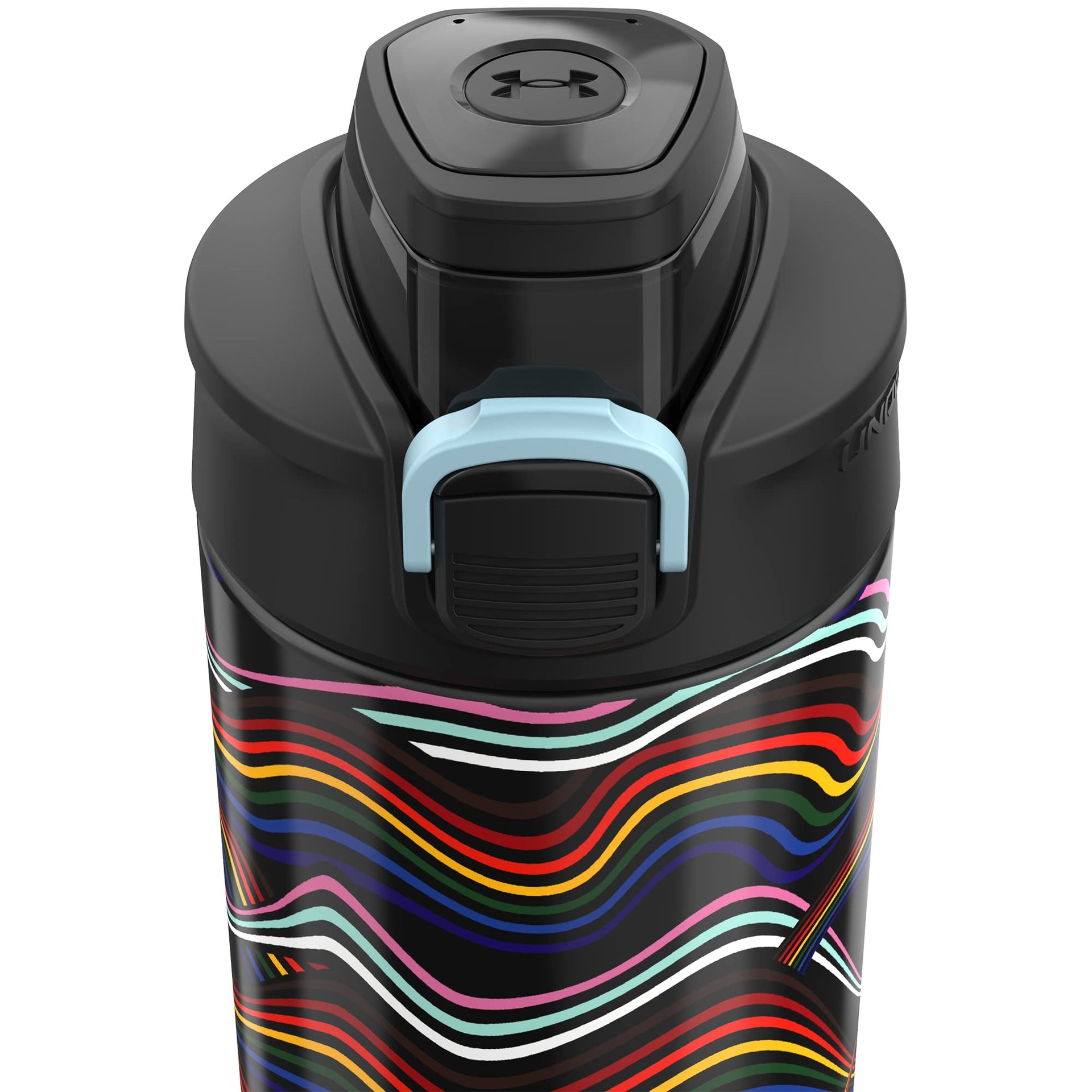 • Carry loop for easy transport that can be locked down when not in use One-hand operation for hydration on the go Non-slip silicone bottom provides quiet set-down on any surface BPA & lead free Capacity: 18 oz. Dimensions: 10"H x 3"W x 3.2"D Manufactured by USB, exclusive licensee of Under Armour Imported Dishwasher safe (top rack only)