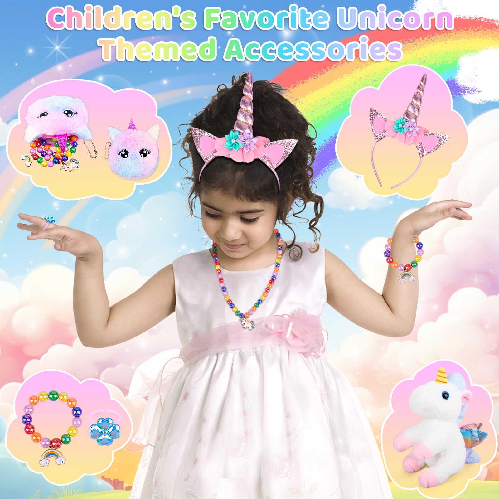 • Magical Dress-Up Fun - Turn any playdate or birthday party into a magical celebration with our adorable unicorn dress up set. It's perfect for playing at home, school, or anywhere you want to sprinkle some sparkle! Charming Necklace, Bracelet, Purse & Headband: Fun Fashion unicorn necklace for Girls dress up, she will love the magical unicorn! Adorn your girls with beautiful unicorn necklace, charming bracelet on wrist, and unicorn purse in hand.