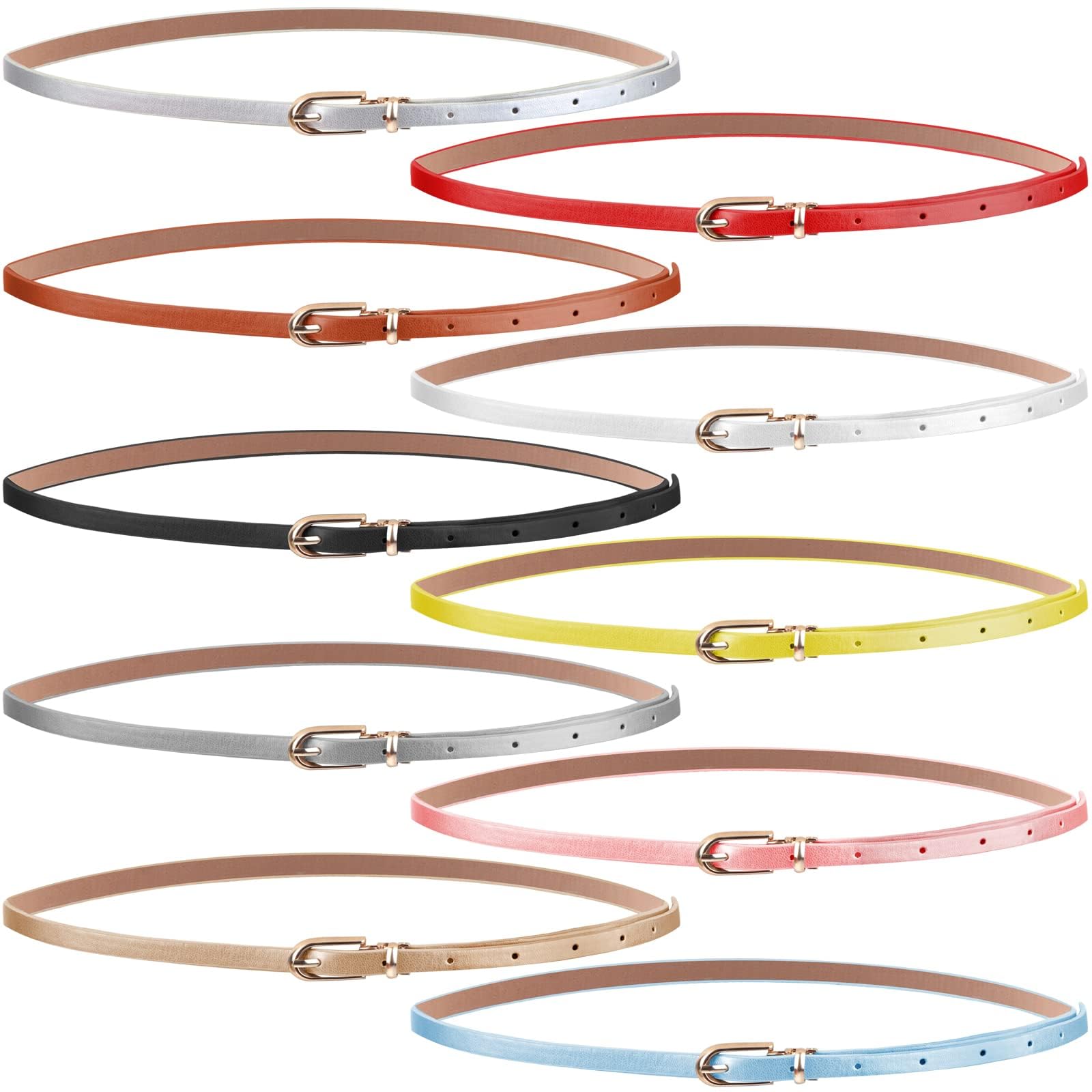 • Package Includes: You will receive 10 pack Thin Skinny Waist Belt in different colors (Black, white, yellow, silver, pink, blue, red, gray, cofee and champagne), enough quantity and color can satisfy your different needs and replacement, also you can share it with others.