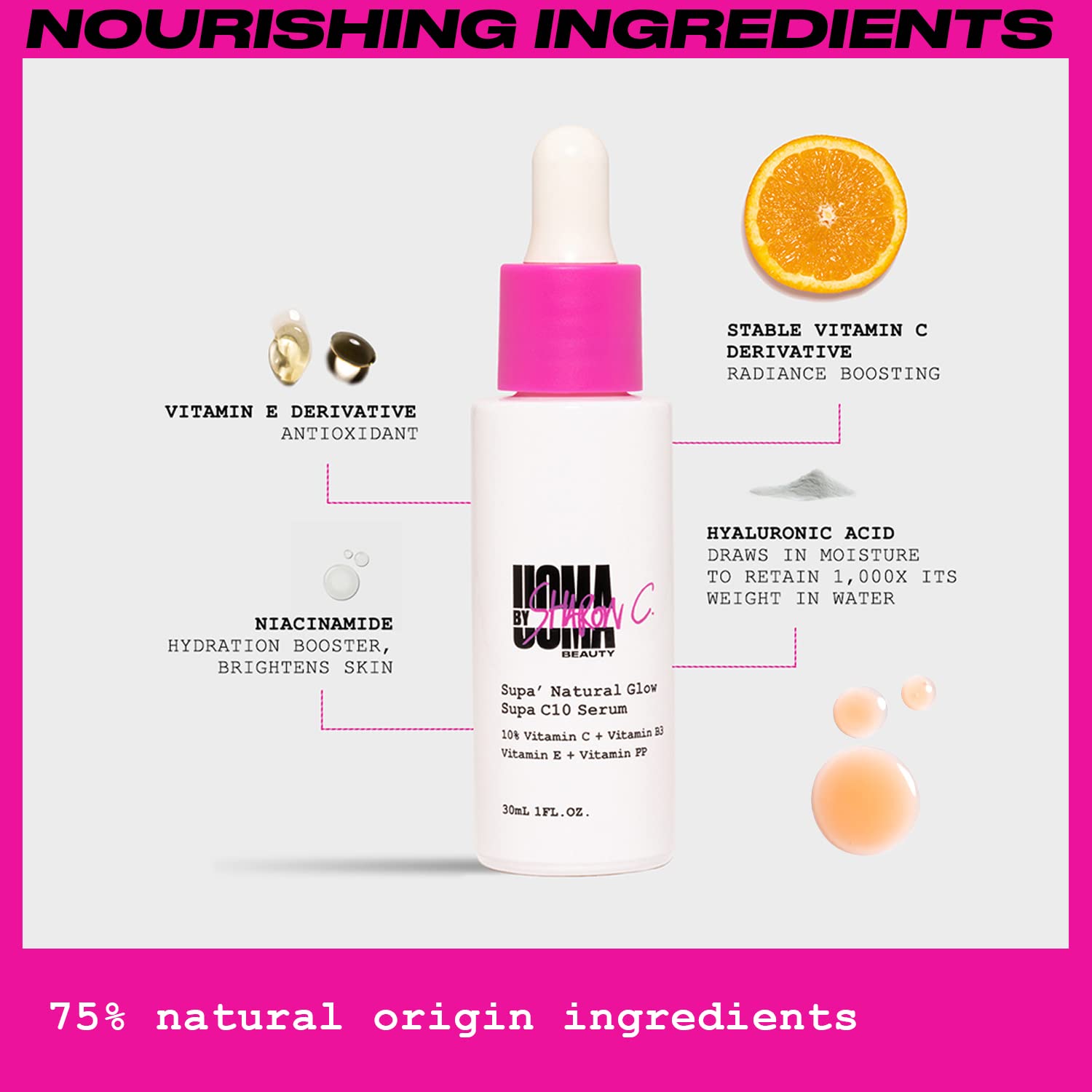 UOMA Vitamin C Serum by Sharon C. Supa Natural Glow (C20) Vitamin C Serum for Face with Hyaluronic Acid + Niacinamide + Vitamin E. Brightening Face