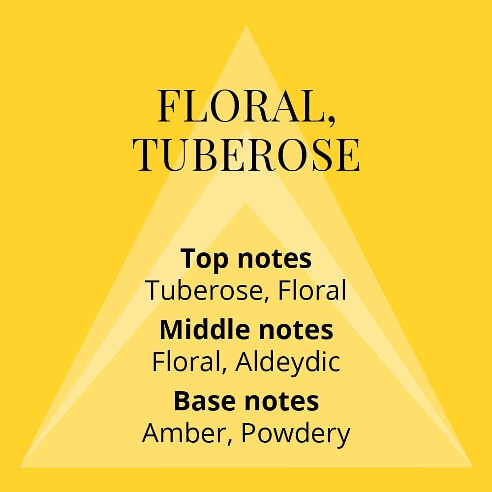 Details: A fresh sparkling flowery fragrance, blending orange flower with sandalwood gardenia and rose on a warm powdery amber base.