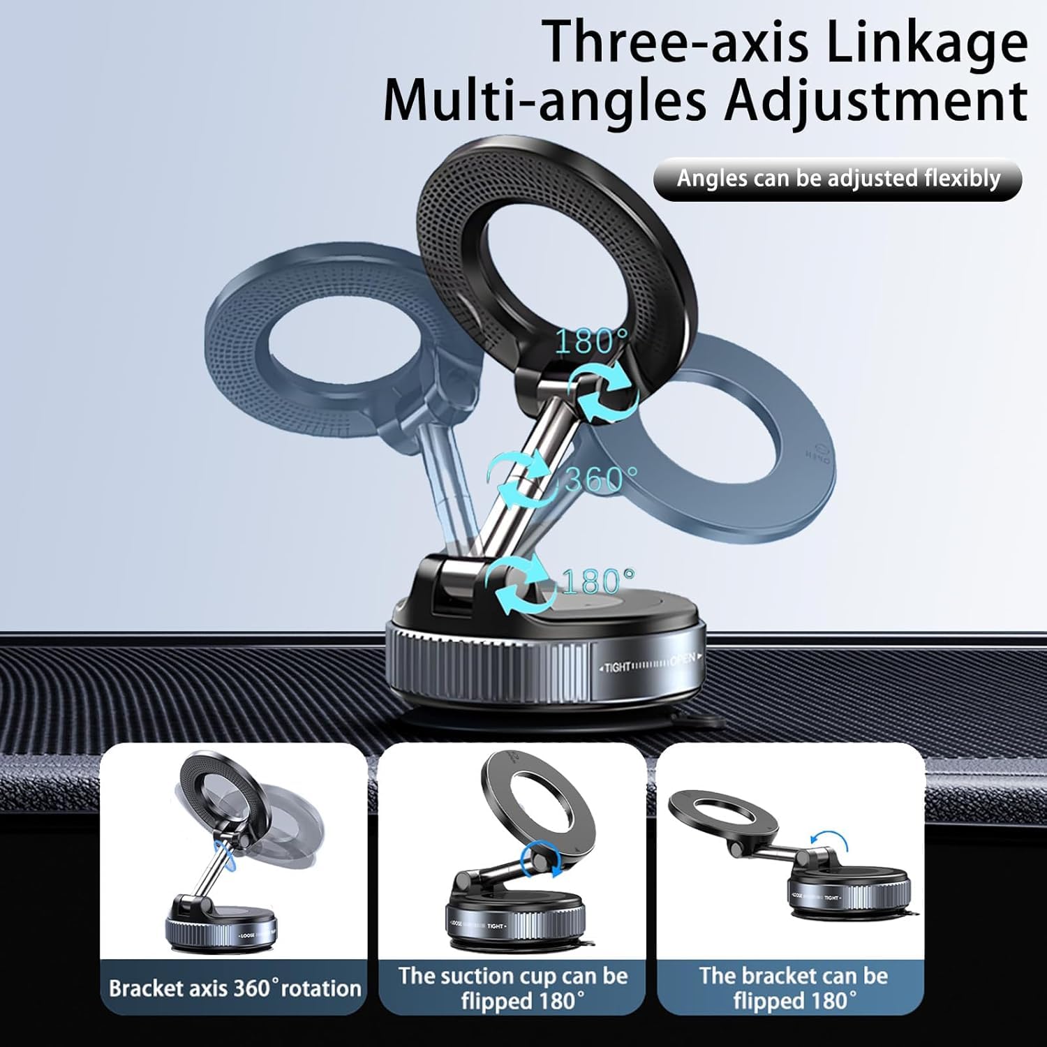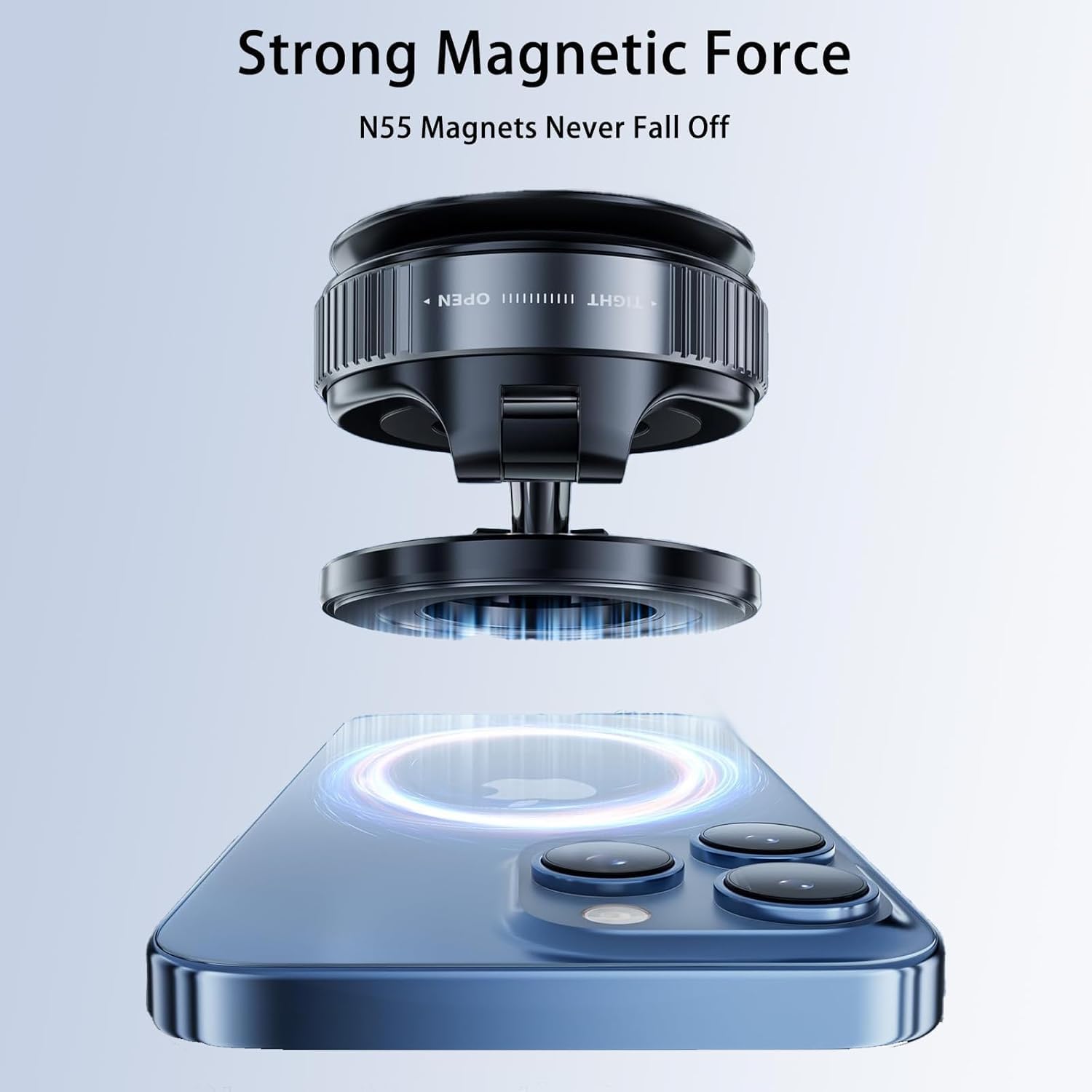 【Strong Suction Car Phone Holders】- The vacuum magnetic phone holder features 3-layer nano-gel suction cup phone mount. Its revolutionary twist-lock mechanism creates an airtight seal that withstands 150+ lbs of pull force. Perfectly adheres to dashboards, and even shower tiles without leaving residue. (Pro tip: Apply a drop of water before mounting for instant maximum suction )