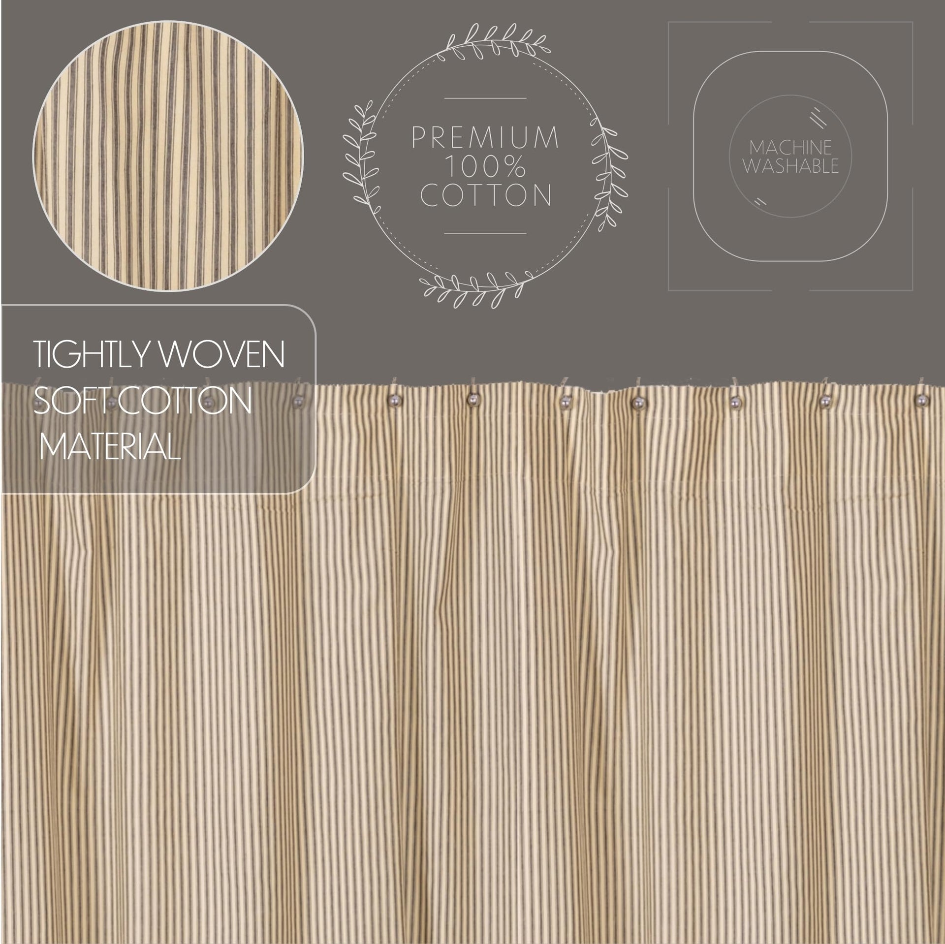 • PREMIUM CONSTRUCTION: Expertly machine-stitched for long-lasting quality. A plastic liner is recommended to keep your 100% cotton fabric farmhouse shower curtain in top condition.