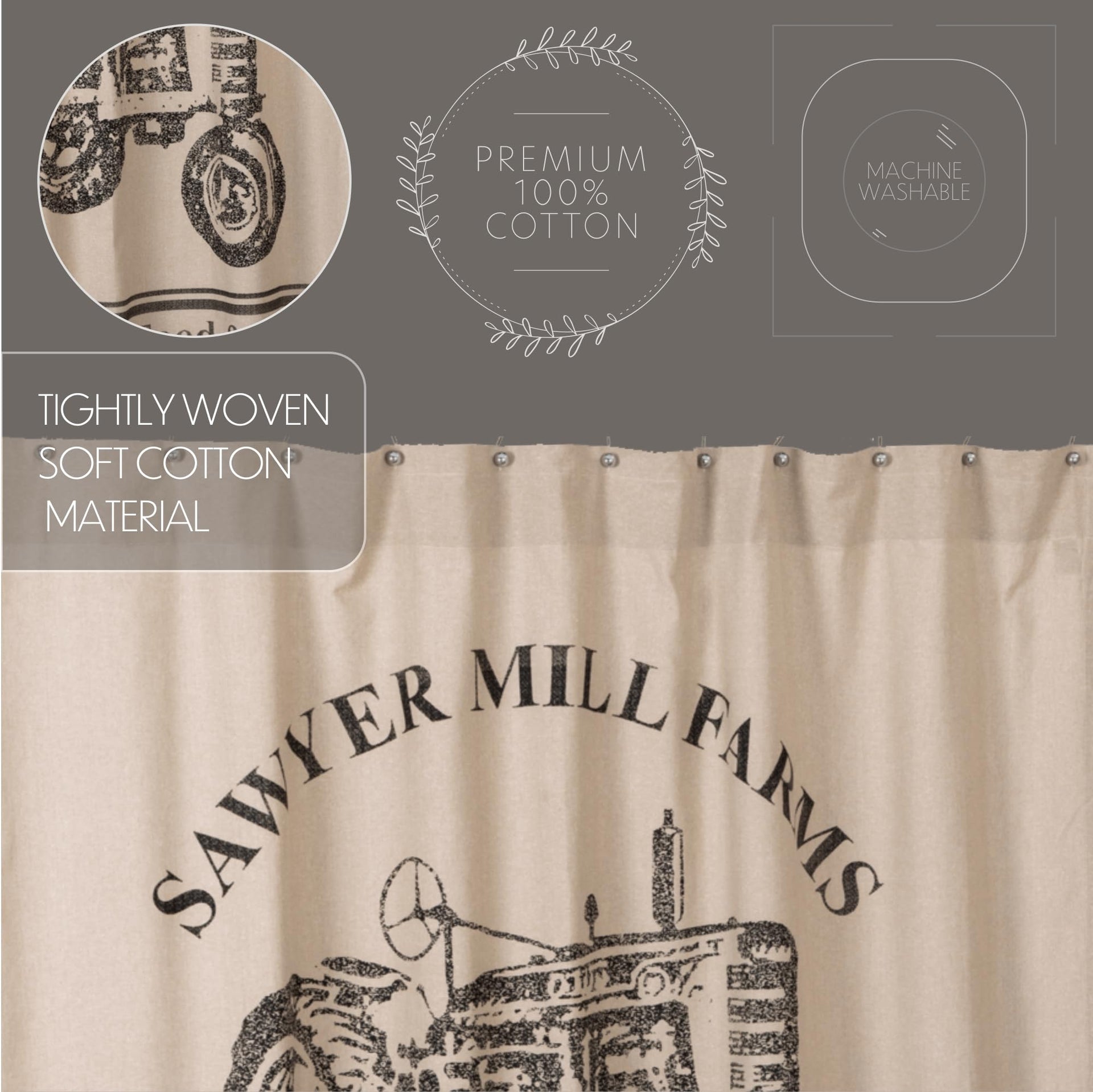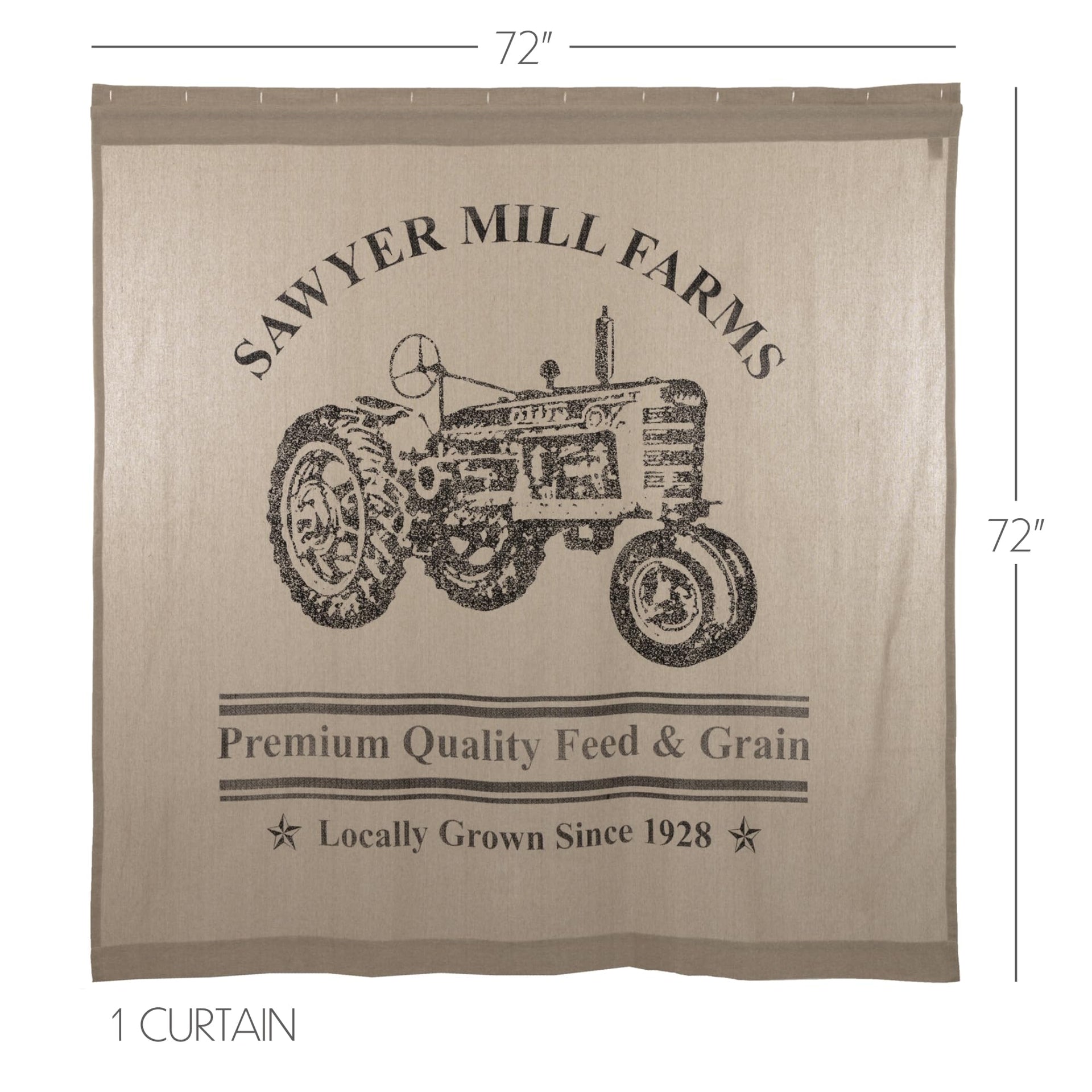VHC Brands Sawyer Mill Charcoal Farmhouse Tan Textured Fabric Shower Curtain Bathroom Decoration 72x72