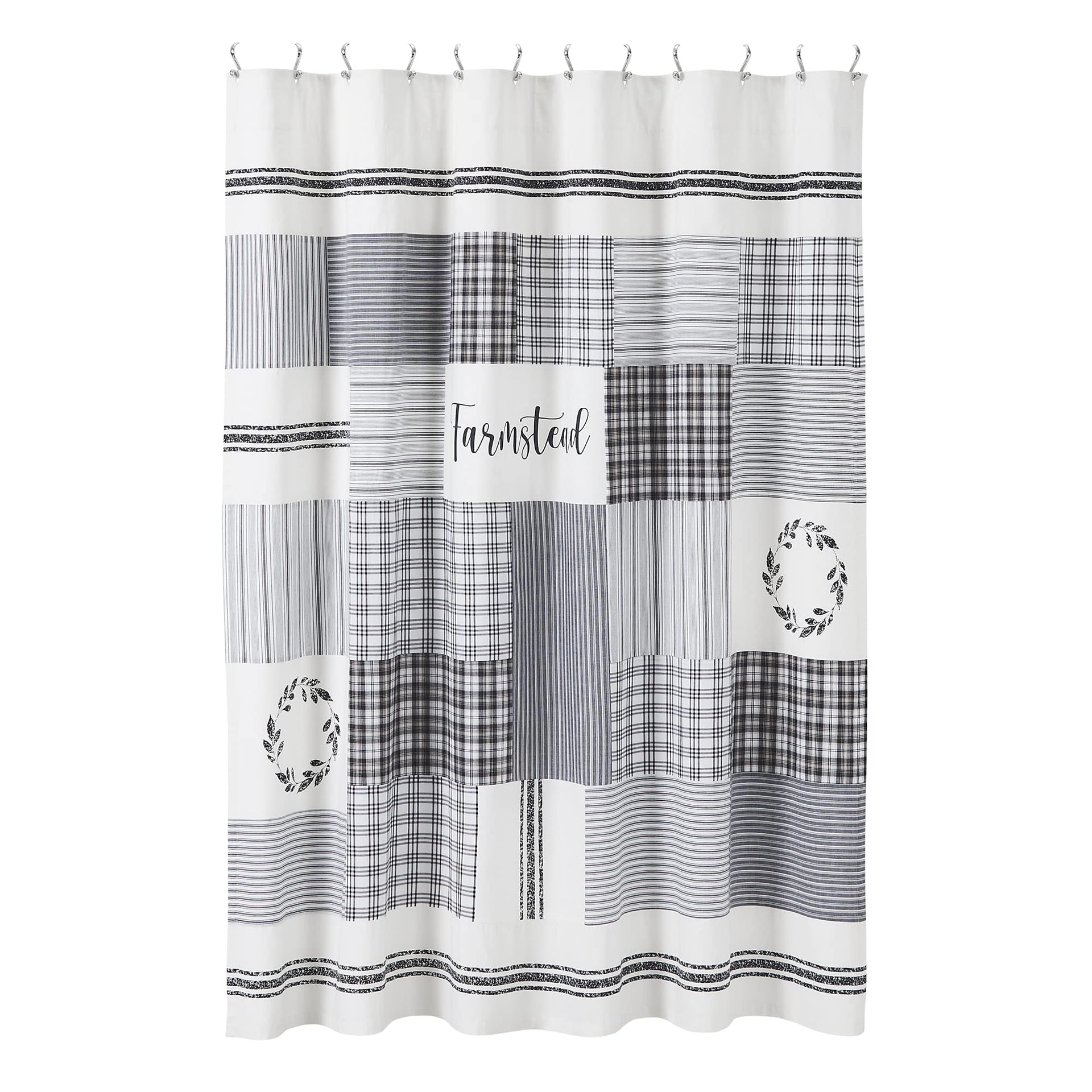 VHC Brands, Sawyer Mill™ Stenciled Patchwork Shower Curtain, Black, 72x72