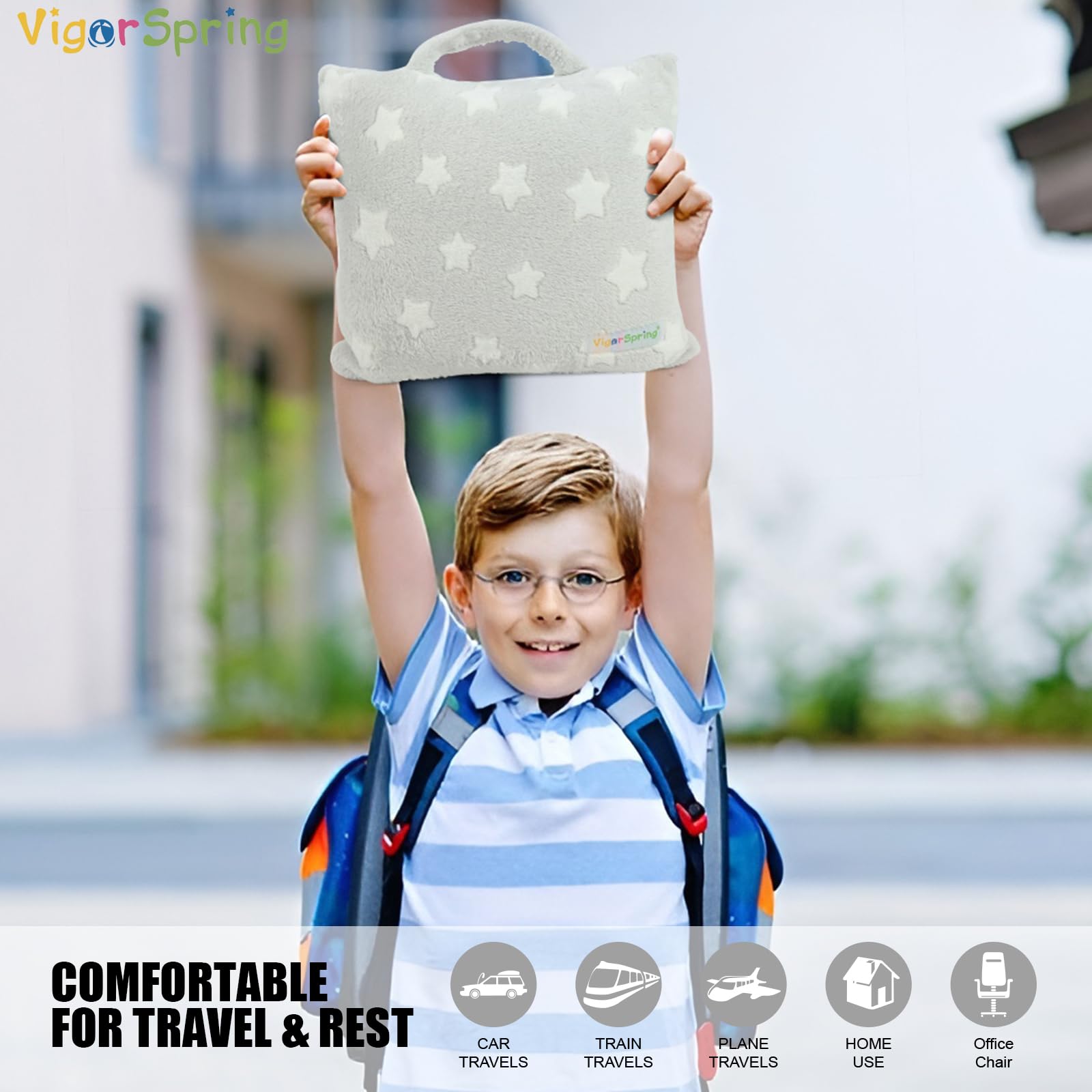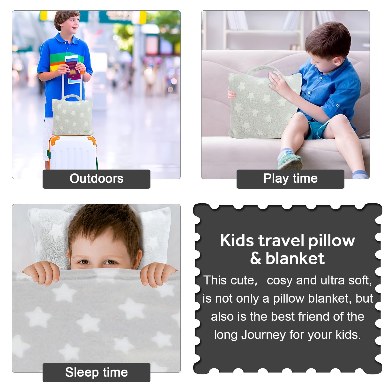 Pillow Blanket 3 in 1 for Kids Soft Light Plush Fuzzy Flannel Throw Zips into a Pillow Camping Airplane Travel Kindergarten Nap time Watching Movie Crib Bedding,This cute and practical set can be used as a plush toy, but also as a pillow,hand warmer,and blanket.
