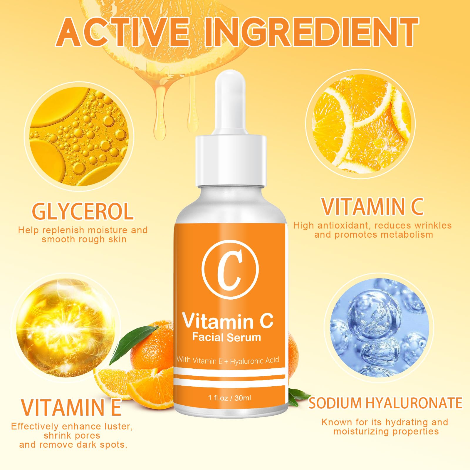 Vitamin C Serum for Face, 20% Vitamin C Brightening Serum with Hyaluronic Acid & Vitamin E, Anti-Aging, Brightening, Improve Dark Spot, Fine Lines