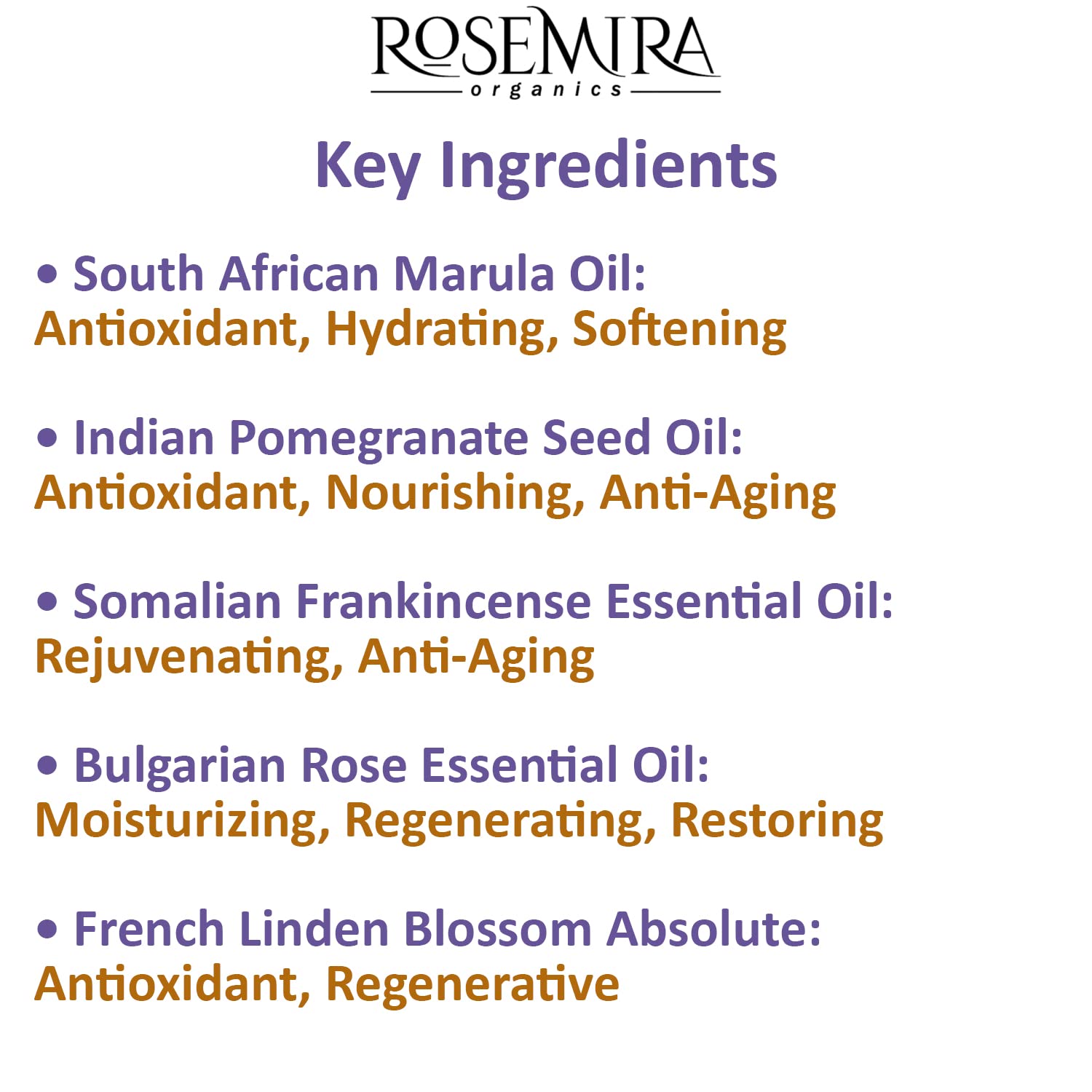 Marula and Pomegranate Seed - potent Antioxidant oils - are combined with the best Anti-Aging essential oils of Frankincense and Rose - known for their powerful skin rejuvenating and hydrating properties. We then add a Citrus Essential Oil Blend for a delightfully scented, fast absorbing serum, rich in the nutrients essential for radiant skin. A great summer serum when you want to hydrate your skin without using heavy oils.