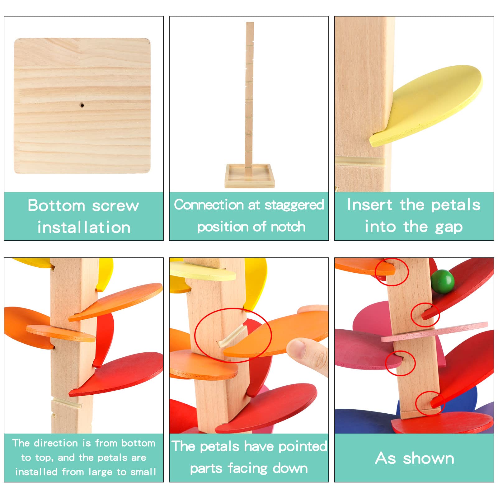 - 【Installation Steps】1. Install screws at the bottom. 2. Connect the two separated trunks. 3. The pointed part of the leaf is facing down 4. Insert the colored leaves into the trunk from small to large and from top to bottom. 5. Finished and enjoy playing.