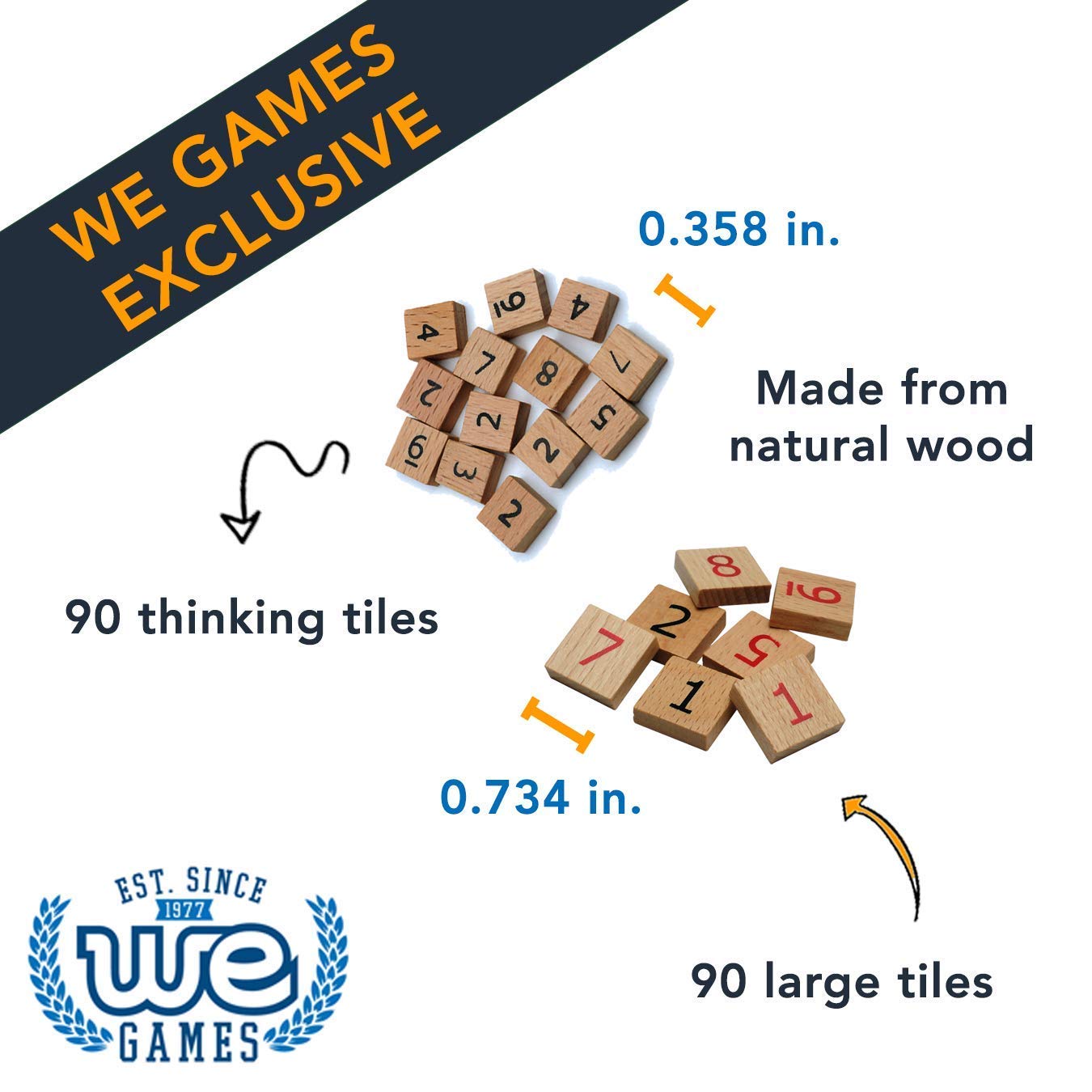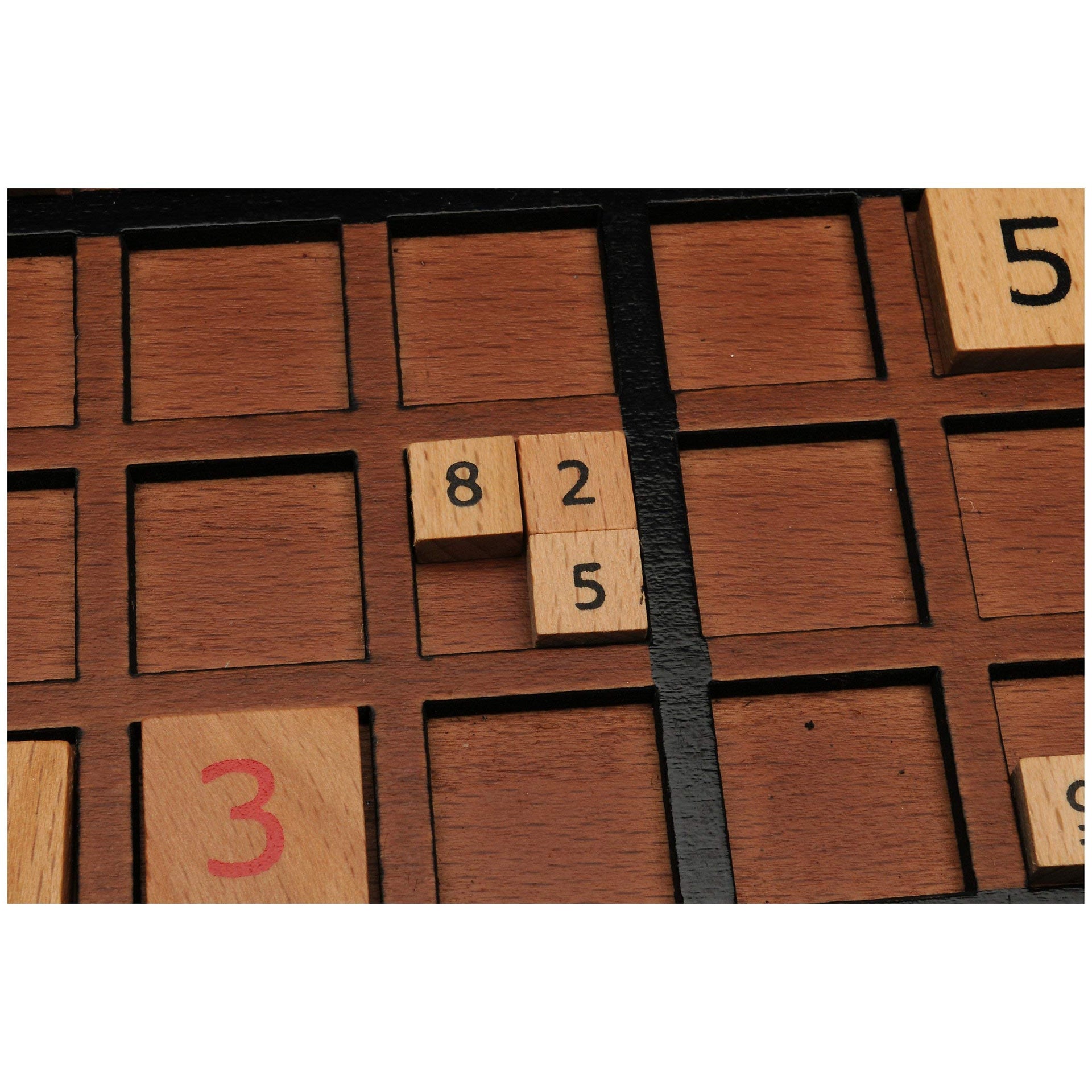 - PLAYING PIECES: Includes 90 large number pieces and 90 thinking pieces. Each is crafted from natural wood and made to withstand years of play. Includes starter puzzles, history of sudoku and game directions. Big tiles measure: .734 x .727 x .196 inches Small tiles measure: .358 x .357 x .103 inches